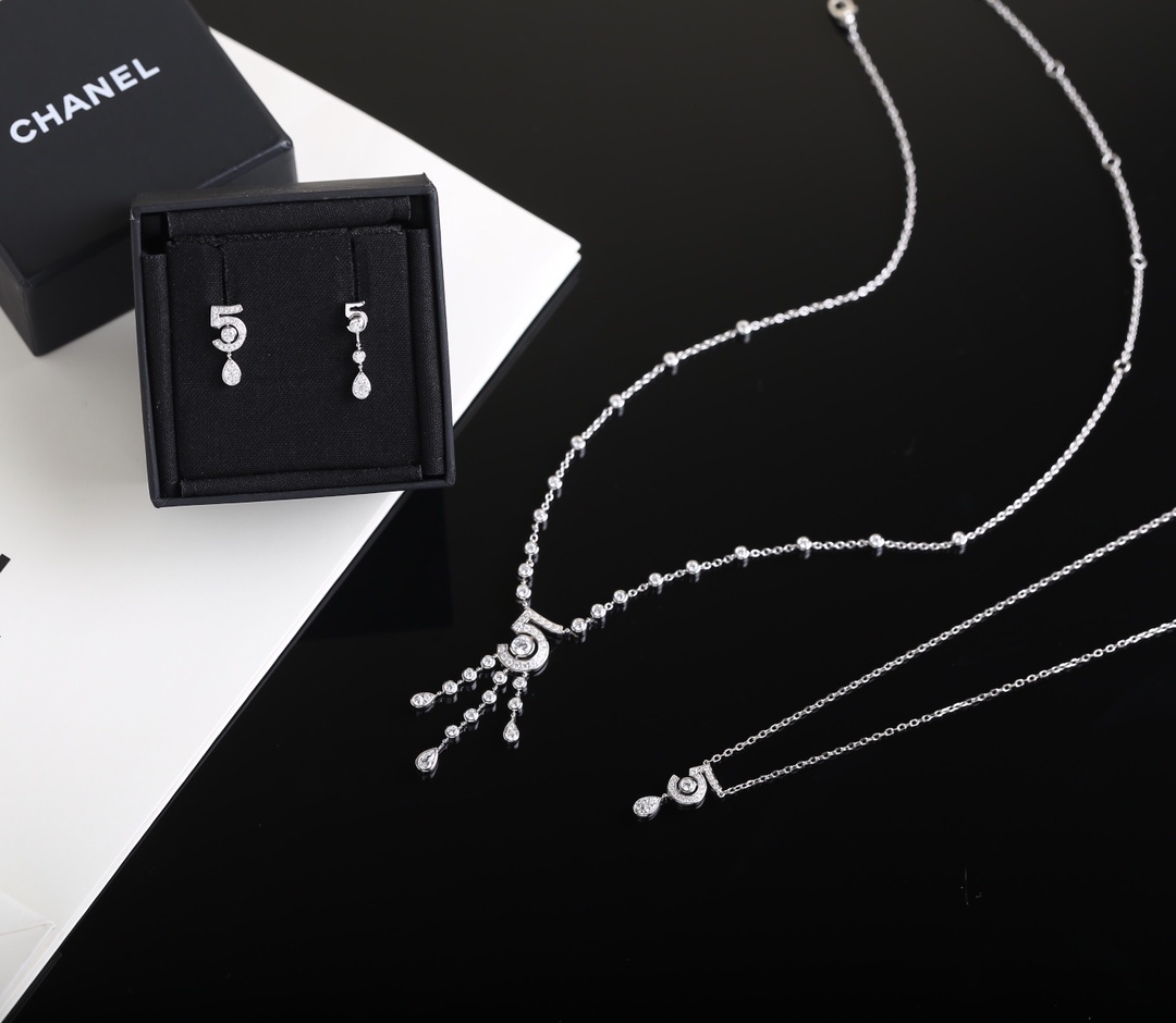 Choosing the Chanel Silver Number 5 Diamond Necklace means investing in a piece of timeless elegance and unparalleled quality. Chanel is a brand known for its iconic designs and luxurious materials, and this necklace is no exception. It's a versatile piece that can be worn for any occasion, adding a touch of sophistication to any outfit. Whether you're treating yourself or looking for the perfect gift, the Chanel Silver Number 5 Diamond Necklace is a choice that will be treasured for years to come. It's more than just a piece of jewelry; it's a symbol of style, grace, and enduring beauty. The Chanel Silver Number 5 Diamond Necklace is a statement piece that reflects your impeccable taste and appreciation for luxury. Its unique design and exquisite craftsmanship set it apart from other necklaces, making it a standout addition to your collection. When you wear this necklace, you're not just wearing jewelry; you're wearing a piece of Chanel's rich history and legacy.
