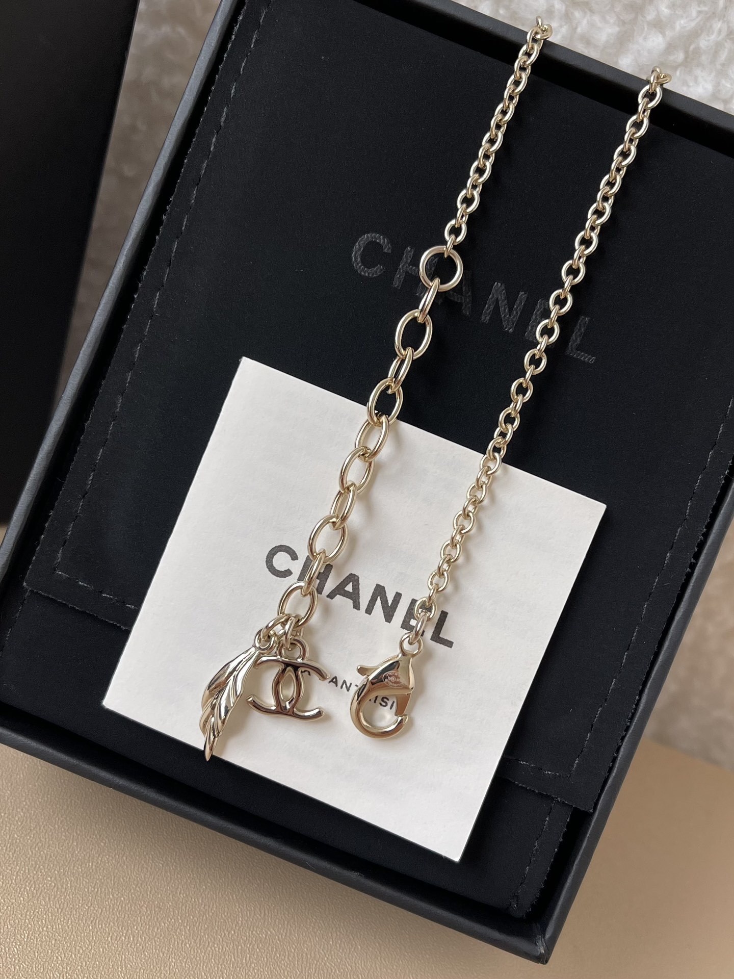 Another important aspect of caring for your necklace is to handle it with care. Avoid pulling or tugging on the chain, as this can weaken the links and cause the necklace to break. When putting on or taking off the necklace, make sure to open and close the lobster clasp gently. Regularly inspect the necklace for any signs of damage, such as loose links or a cracked pendant. If you notice any issues, take the necklace to a professional jeweler for repair. By following these simple care tips, you can ensure that your **Chanel Pink Resin Charm Necklace** remains a cherished piece in your jewelry collection.