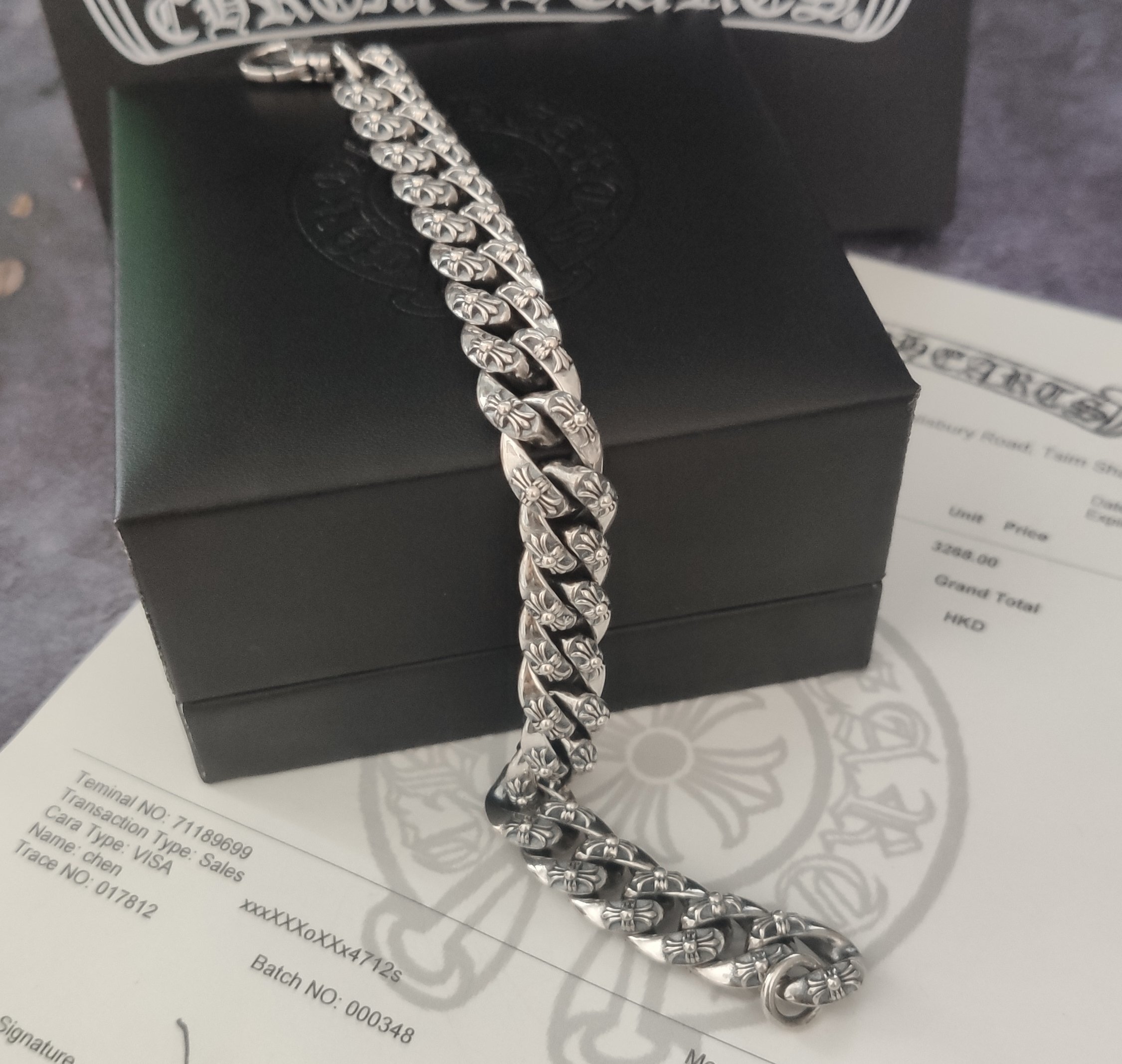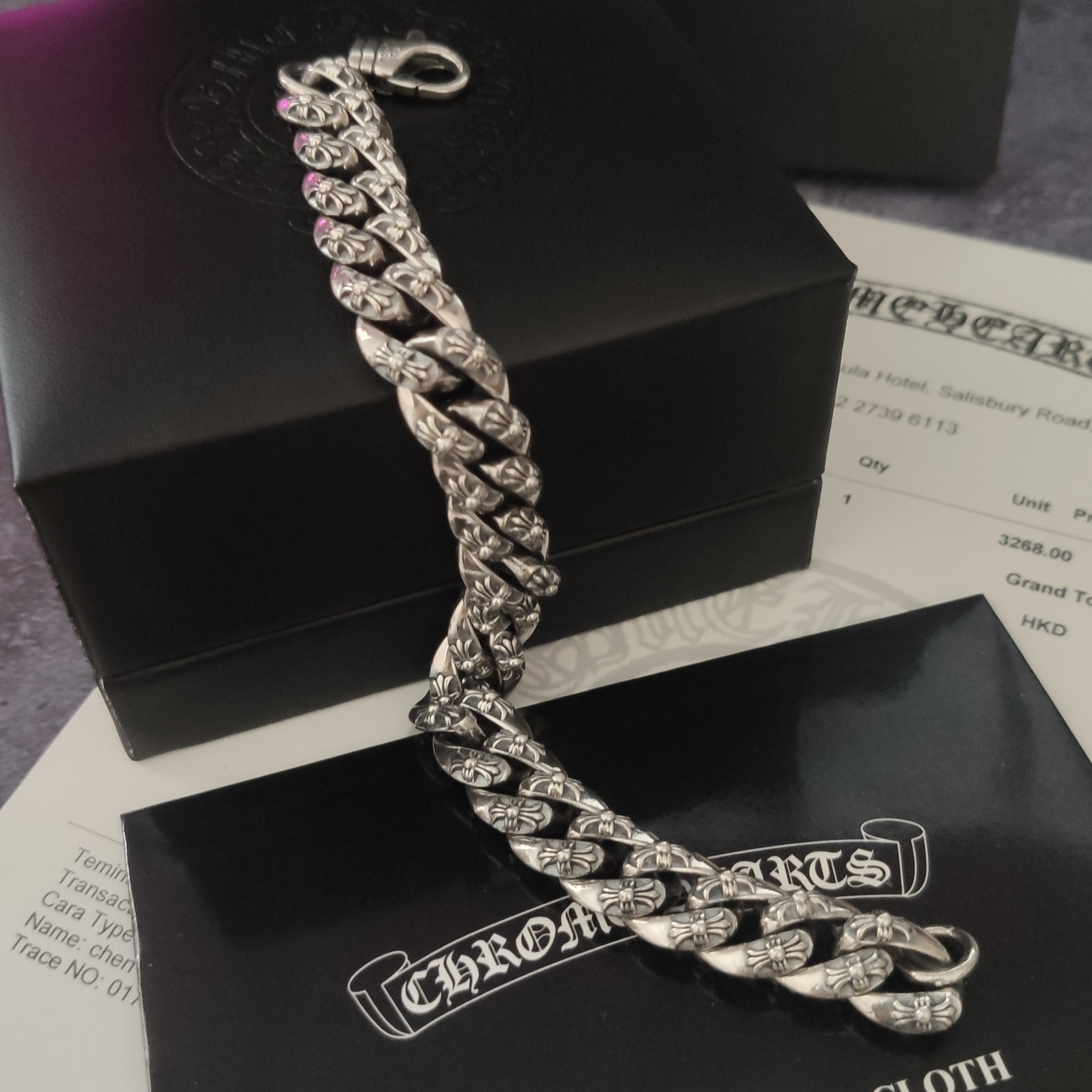 - Design: Intricate Chrome Hearts inspired cross and curb chain design - A timeless and iconic pattern.