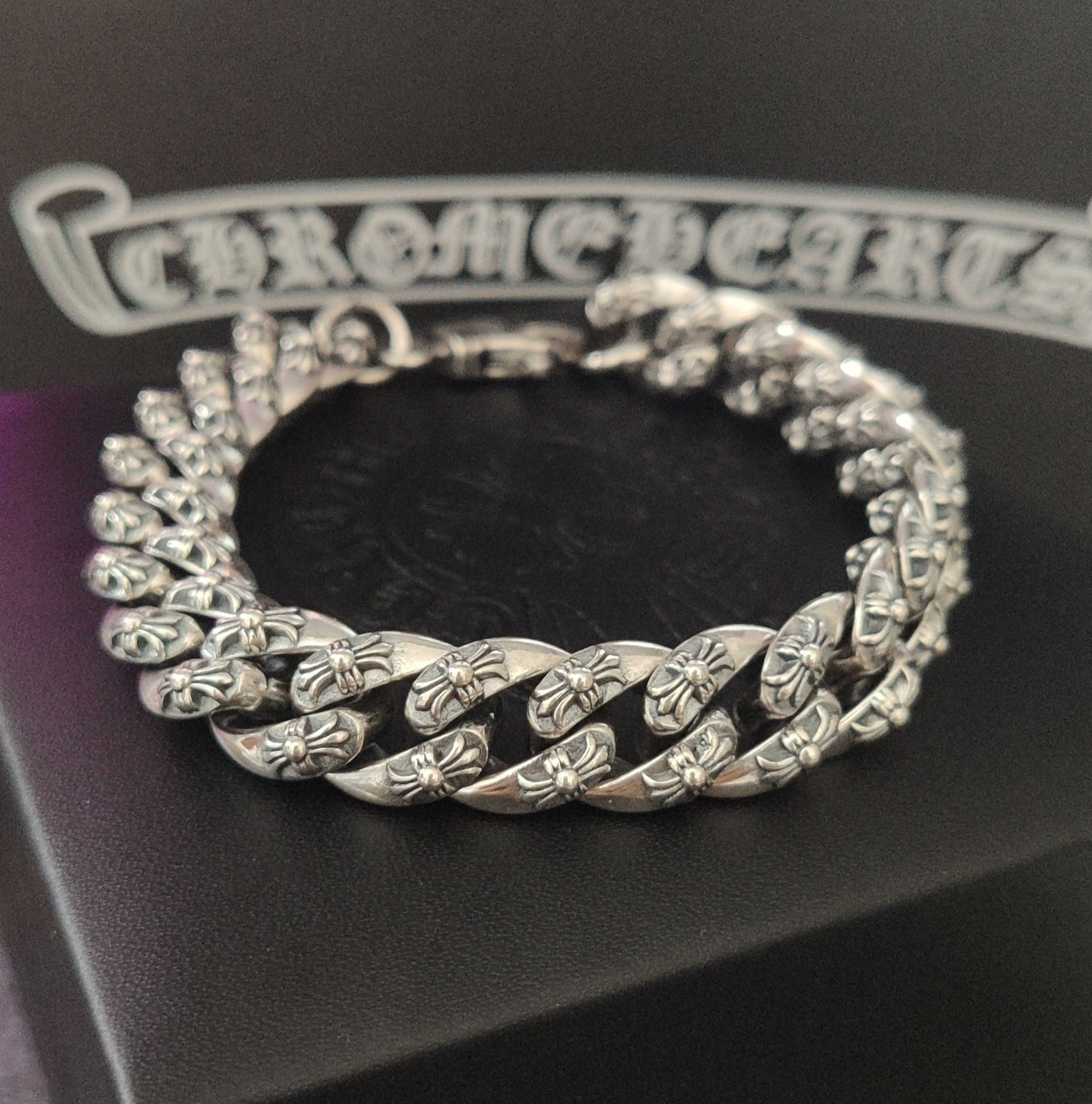 Dare to be different with our meticulously crafted Chrome Hearts inspired bracelet. This statement piece is more than just an accessory; it's a symbol of individuality and bold style. Perfect for those who appreciate high-quality craftsmanship and edgy designs, this bracelet will instantly elevate your look.