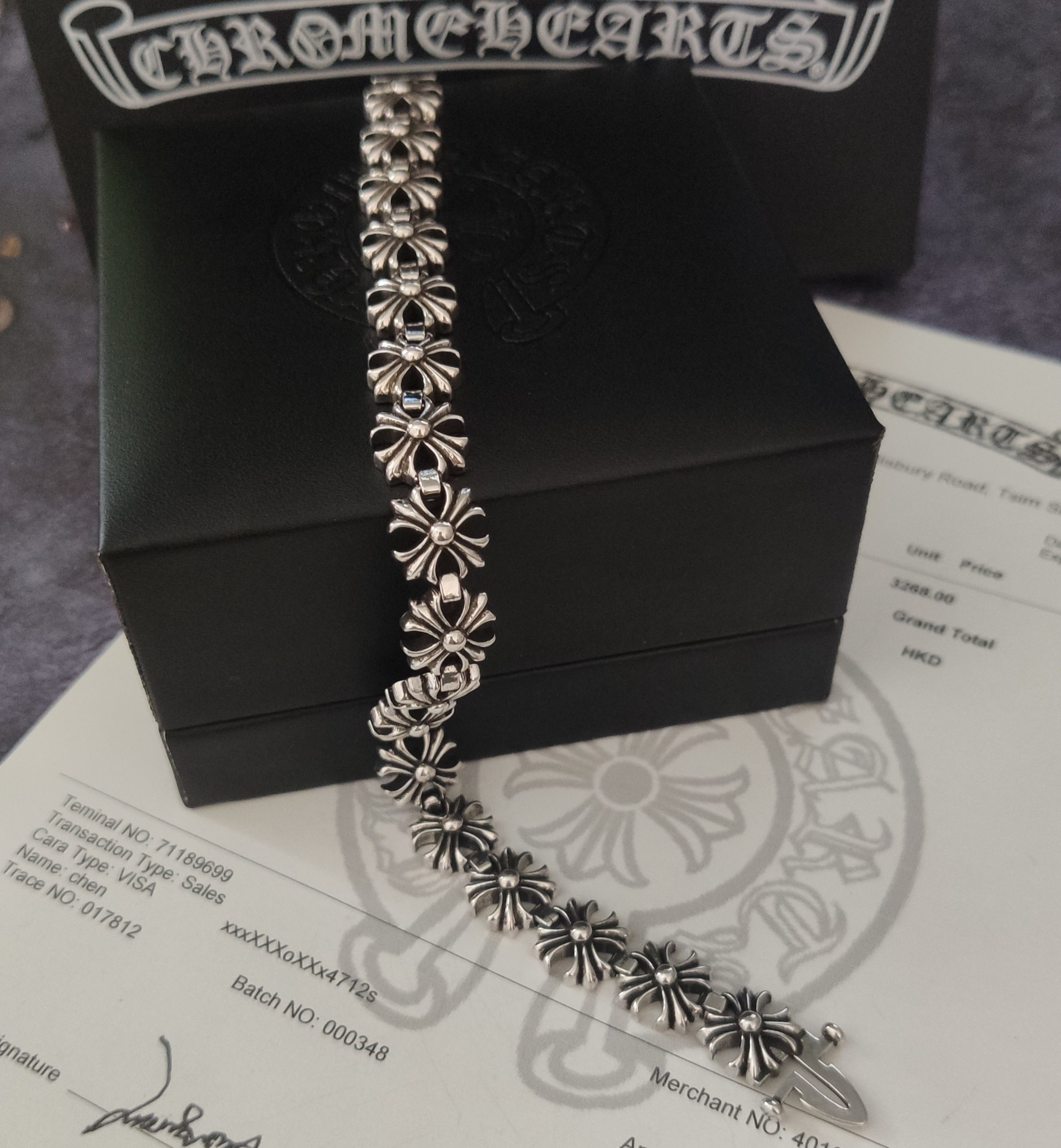 Whether you're dressing up for a night out or adding an edge to your everyday look, the Chrome Hearts Cross Link Bracelet is the perfect accessory. It's versatile enough to complement any style, from casual to formal, and is sure to turn heads wherever you go.