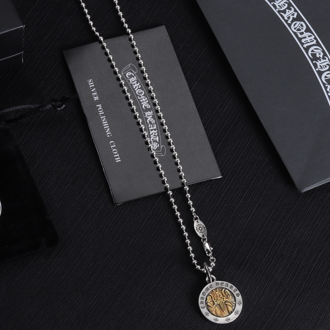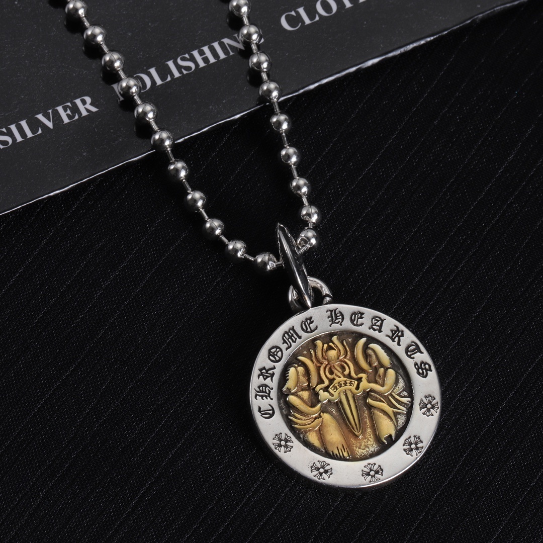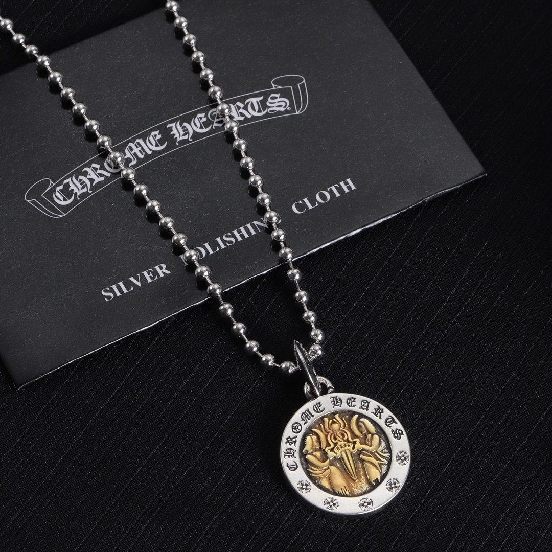 The necklace's versatility makes it suitable for a wide range of occasions, from casual outings to formal events. It can be worn alone as a statement piece or layered with other necklaces to create a more personalized look. The durable construction ensures that it will withstand daily wear and tear, making it a reliable and long-lasting investment. When you choose the Chrome Hearts Silver & Gold Rotating Pendant Necklace, you're choosing a piece that embodies style, quality, and individuality. You can read about pendant background on Wikipedia.