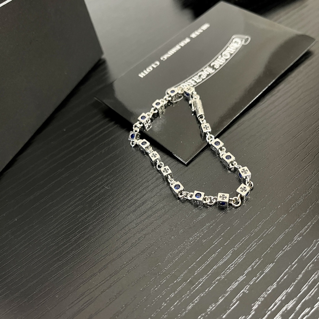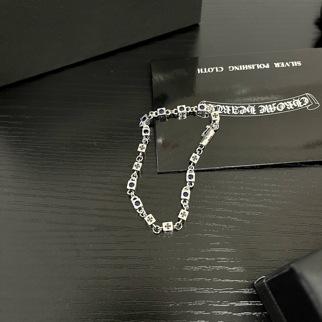 When cleaning the bracelet, be gentle and avoid scrubbing too hard, as this can loosen the stones or scratch the silver. Use a soft brush to reach any hard-to-reach areas. After cleaning, make sure to dry the bracelet thoroughly before storing it. With proper care, your Chrome Hearts Silver Blue Stone Bracelet will continue to shine and sparkle, becoming a treasured piece in your jewelry collection.