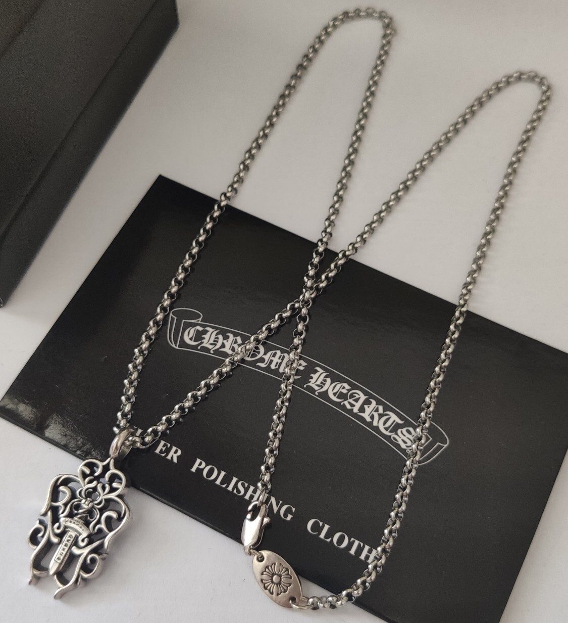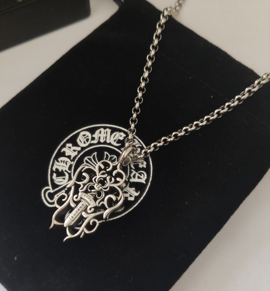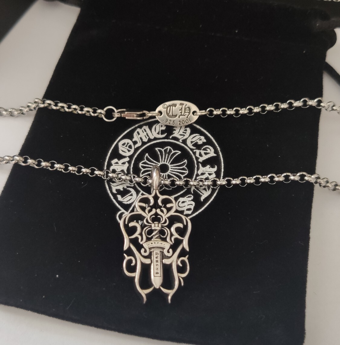 When not wearing the pendant, store it in a dry, airtight container or pouch to prevent tarnishing. Avoid storing it with other jewelry that could scratch or damage the silver. Regularly inspect the pendant for any signs of wear or damage, and have it professionally cleaned and repaired if necessary. With proper care, your Chrome Hearts Silver Dagger Pendant will continue to shine and make a statement for years to come.