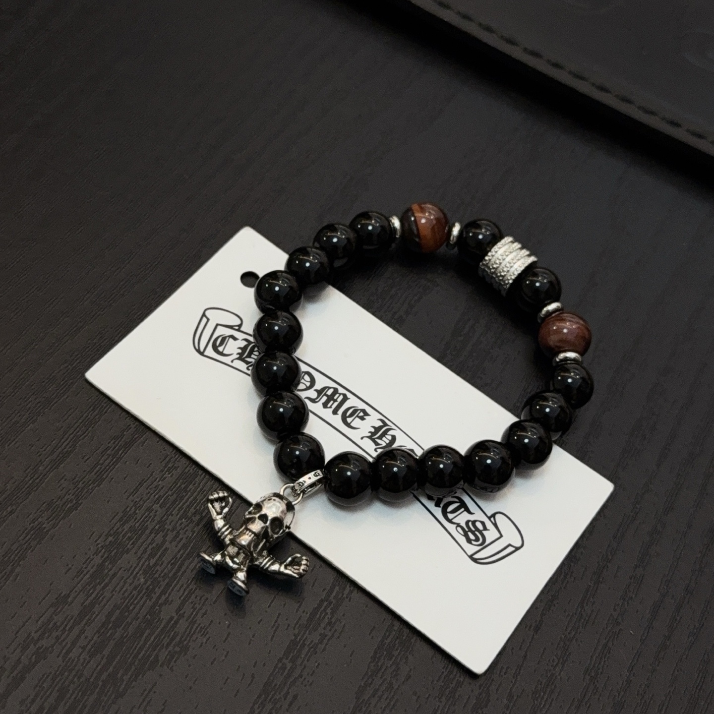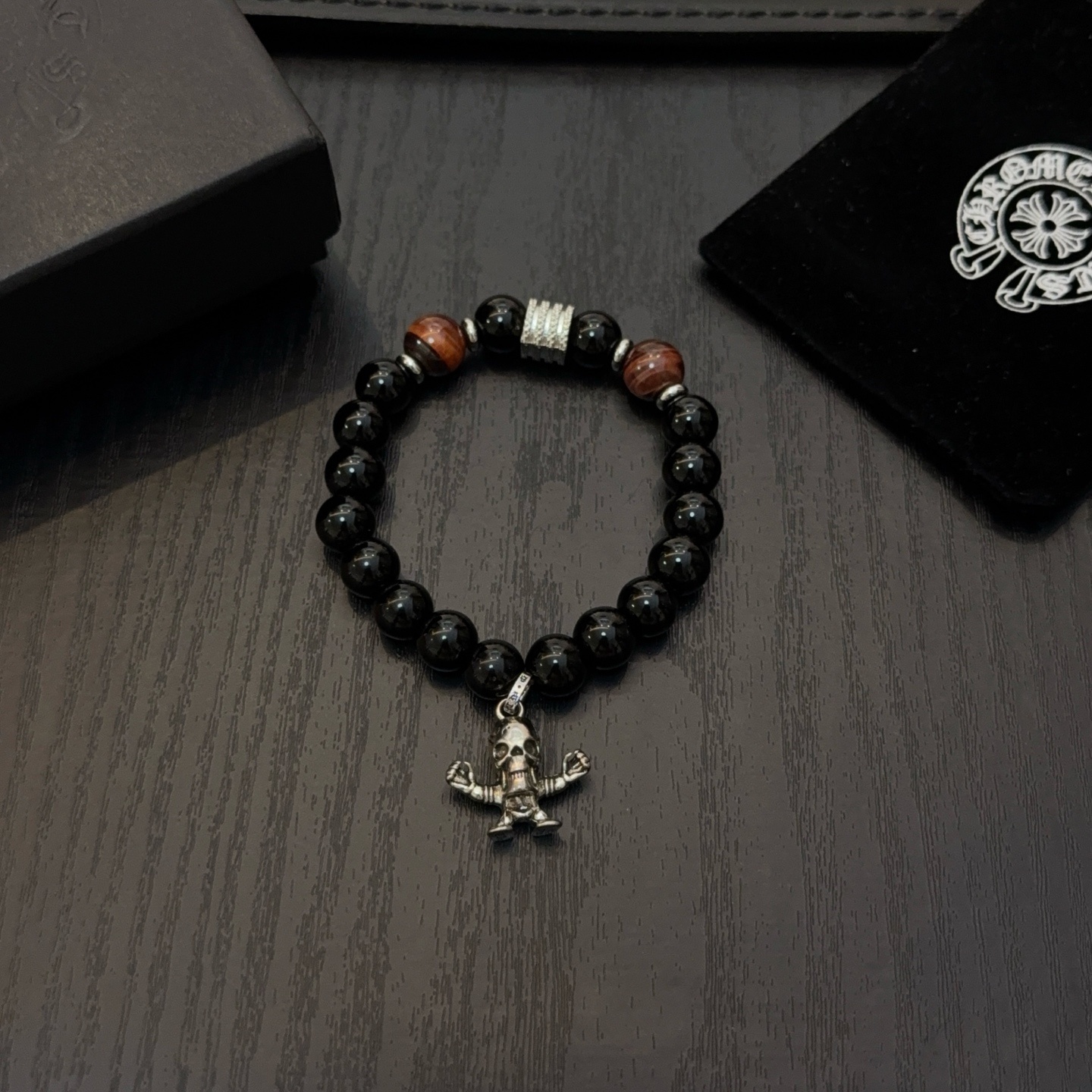 Chrome Hearts Style Beaded Bracelet with Skull Charm