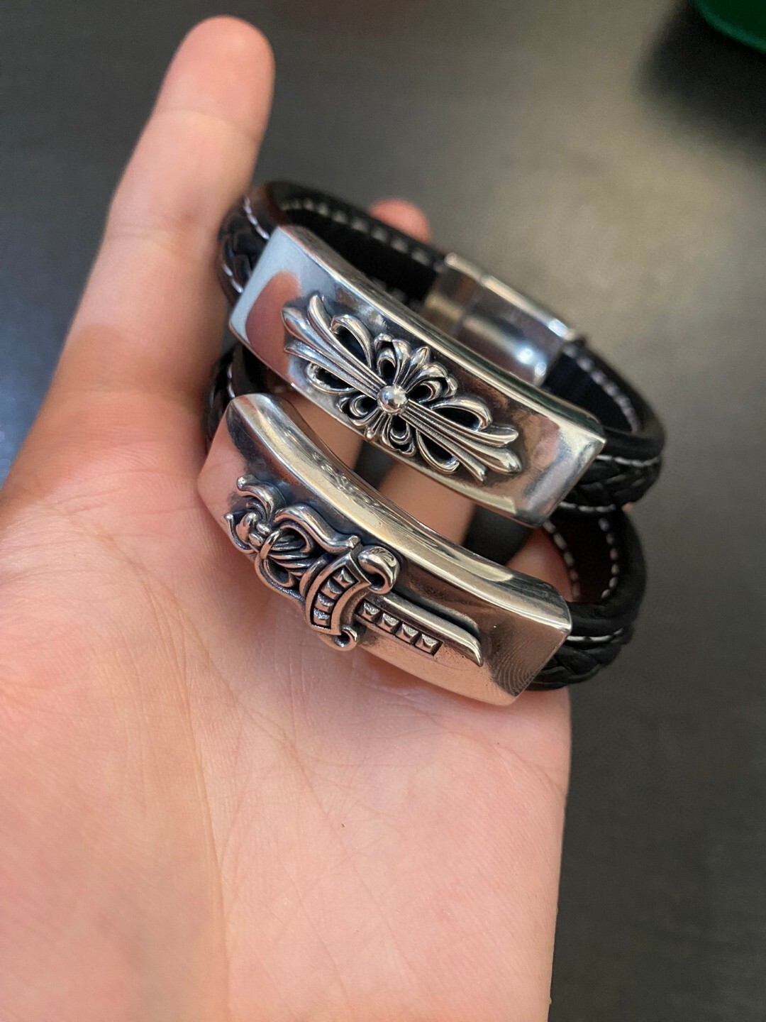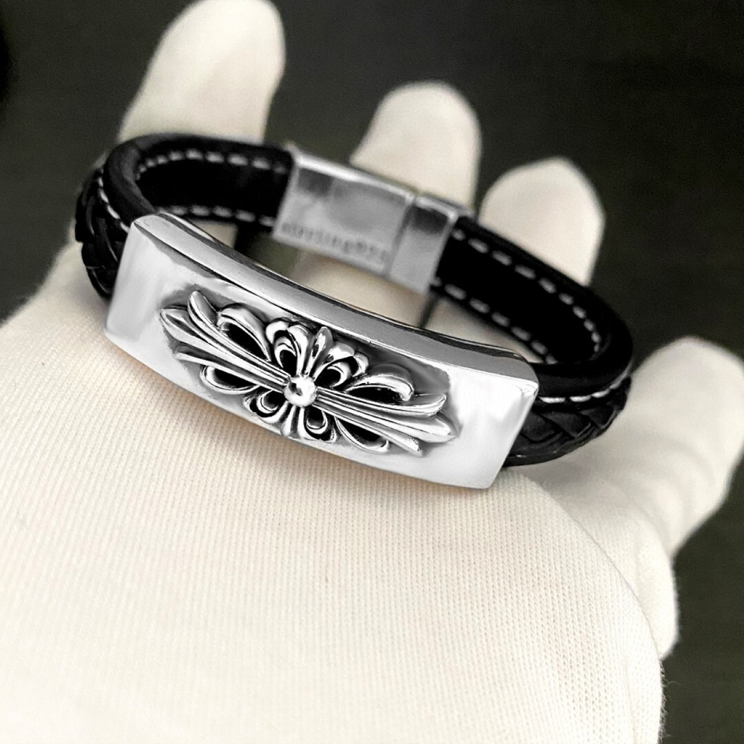Don't miss the opportunity to own this exceptional piece of jewelry. Add the Chrome Hearts Inspired Premium Leather & Sterling Silver Bracelet to your collection today and experience the perfect blend of style, quality, and craftsmanship!