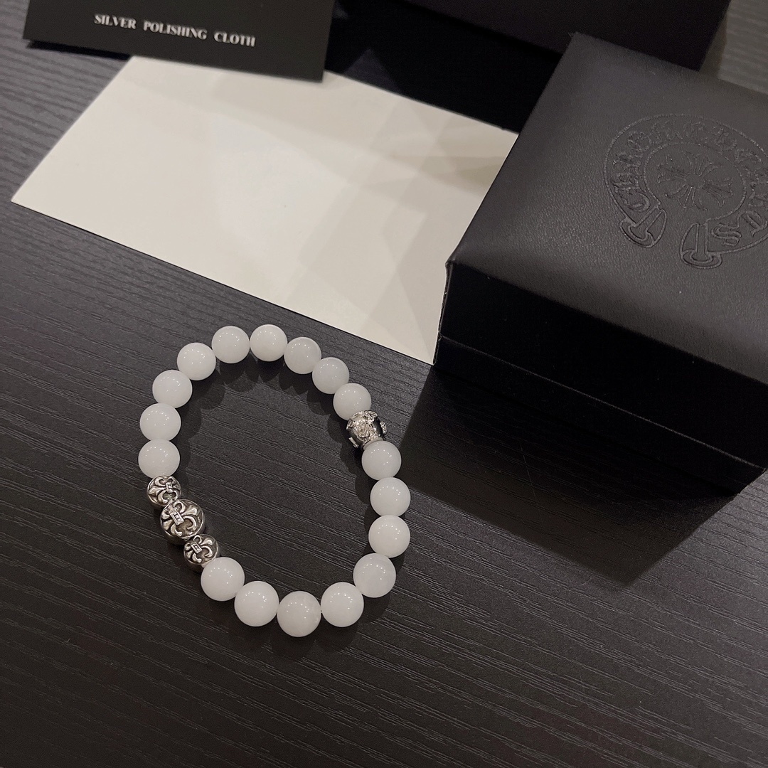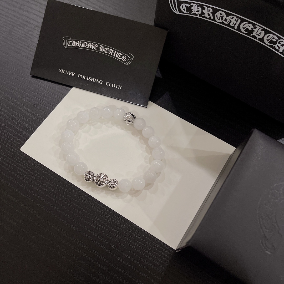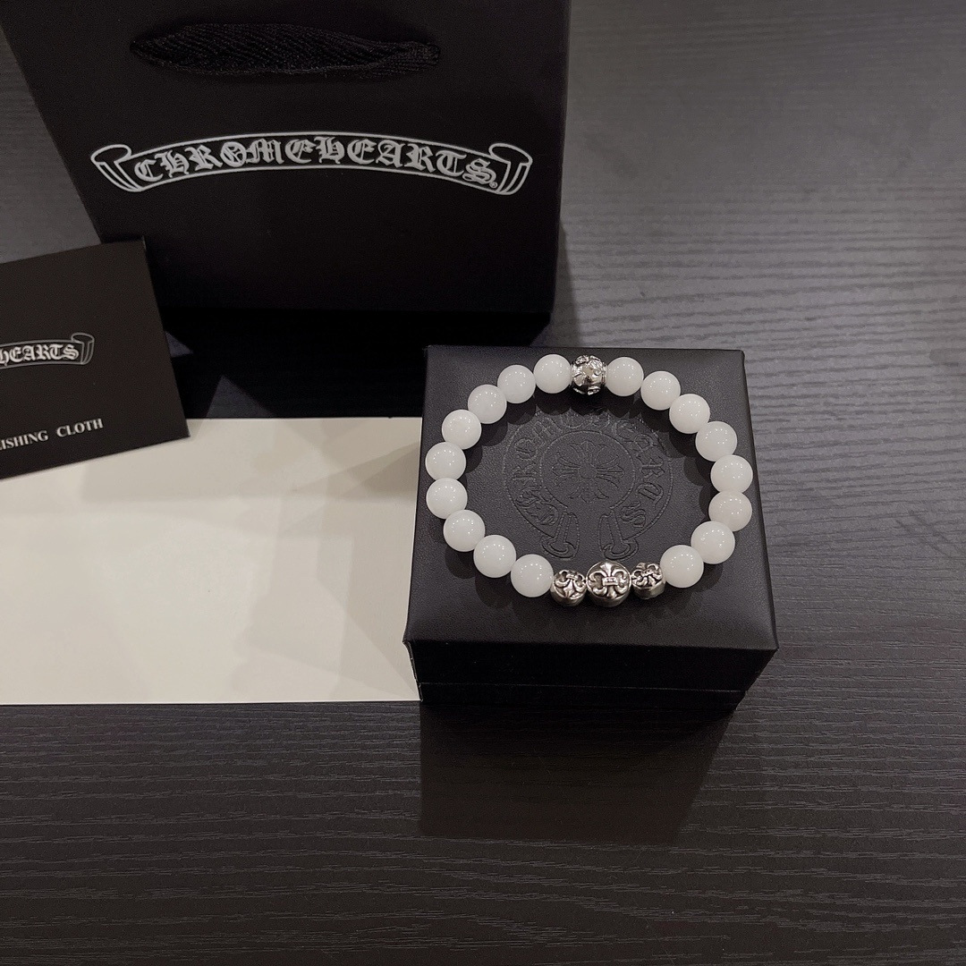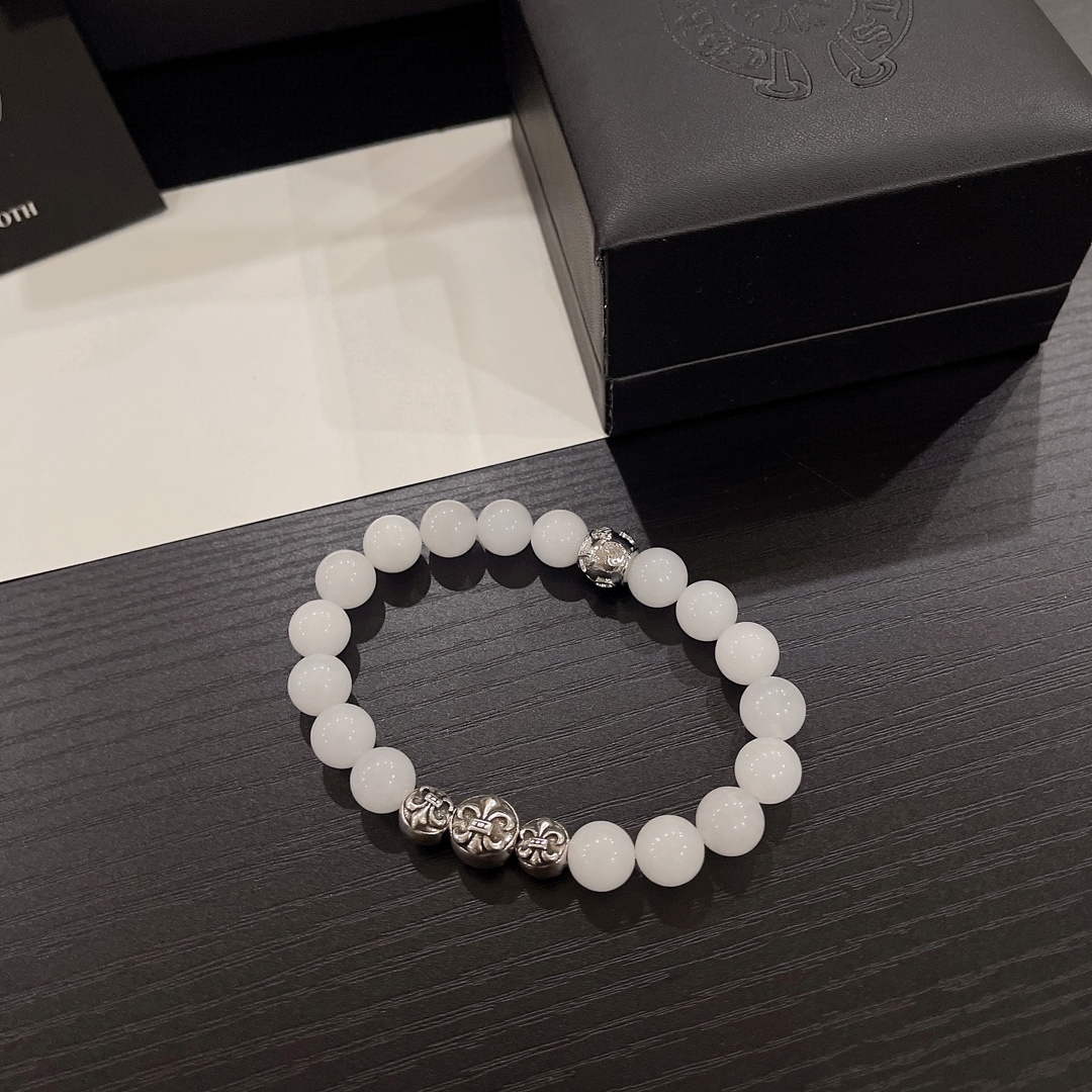 Chrome Hearts White Jade Bead Bracelet - Premium Quality