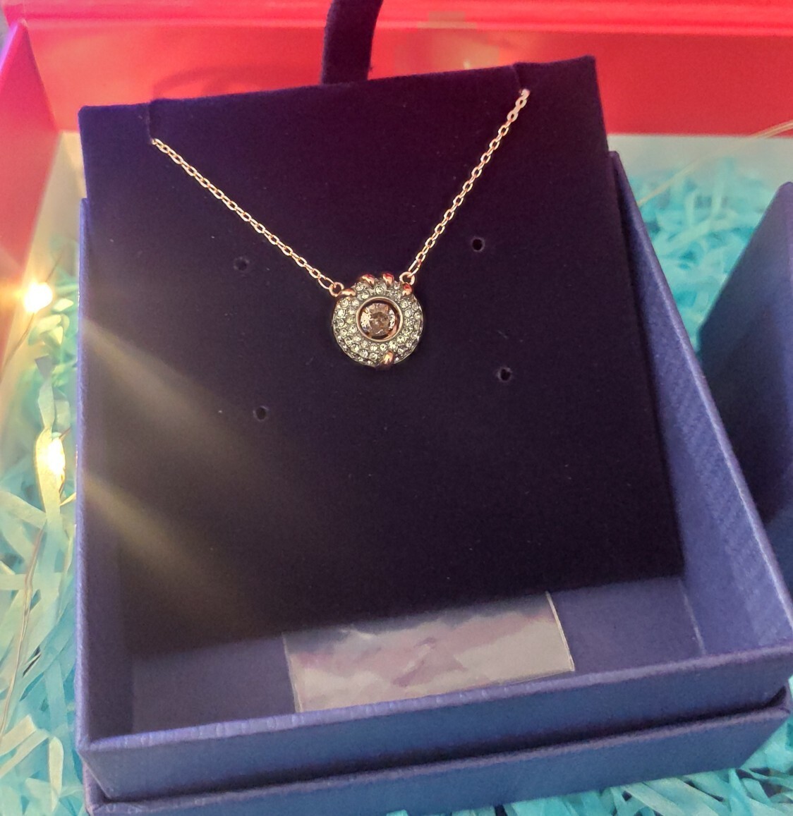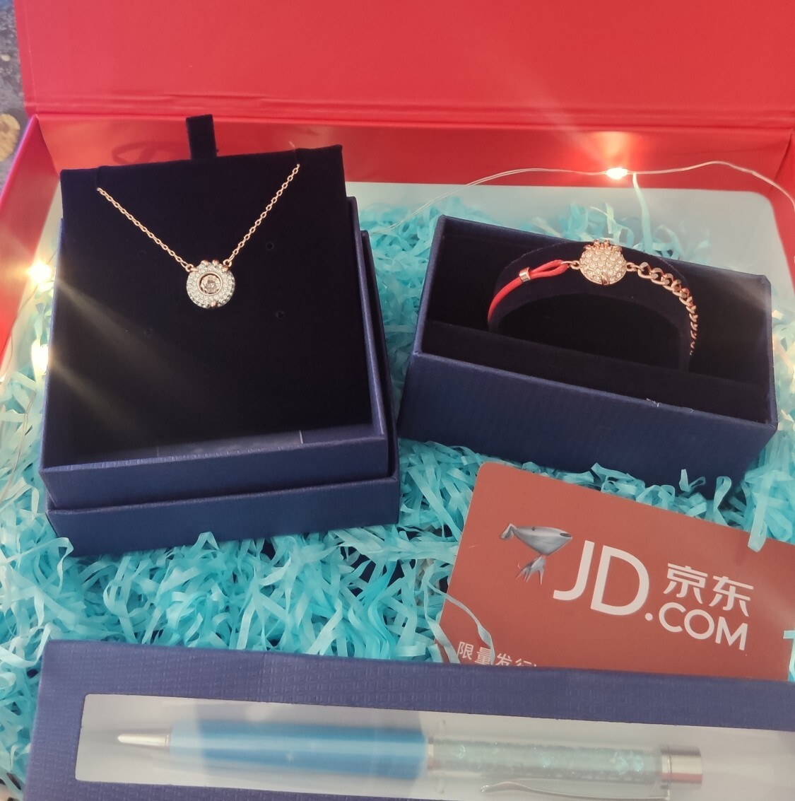 - Material: High-quality alloy, sparkling crystals, durable red cord