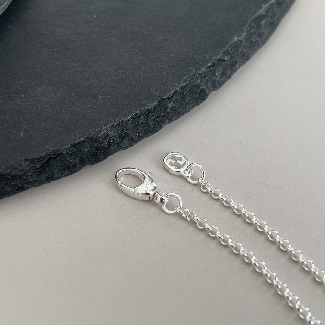 Crafted from premium sterling silver, the Gucci Silver Interlocking G Chain Bracelet offers exceptional durability and a brilliant shine. Sterling silver is known for its resistance to tarnish, ensuring that your bracelet maintains its luster over time. The high-quality material also makes it hypoallergenic, making it suitable for those with sensitive skin. The delicate chain is carefully constructed to provide both comfort and security, allowing you to wear it with confidence.