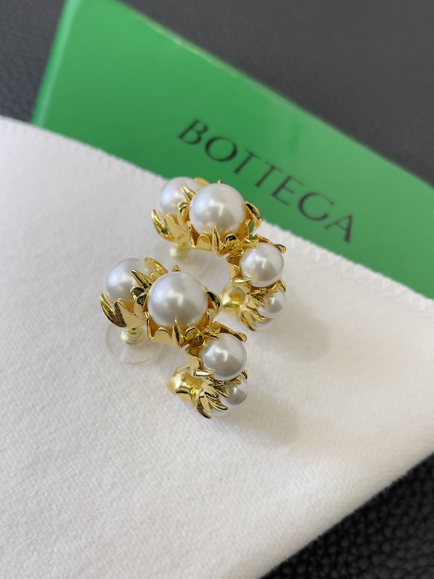 Bottega Veneta is renowned for its dedication to quality and artistry, and these earrings are no exception. Each piece is meticulously crafted to ensure the highest standards of excellence, making them a valuable addition to any jewelry collection. The combination of gold and pearls creates a harmonious balance that exudes sophistication and charm. These earrings are perfect for those who appreciate the finer things in life and seek to express their individuality through timeless elegance.