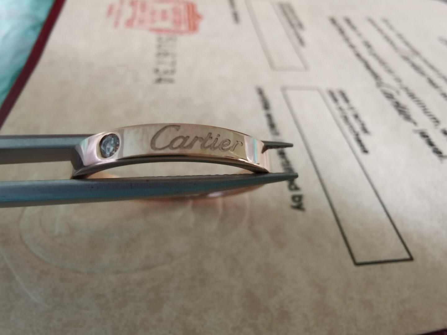 A: The Cartier logo is a symbol of the brand's rich history and reputation for excellence. It is a mark of authenticity and quality, signifying that the ring is a genuine Cartier creation. The subtle engraving adds a touch of iconic branding to the ring.