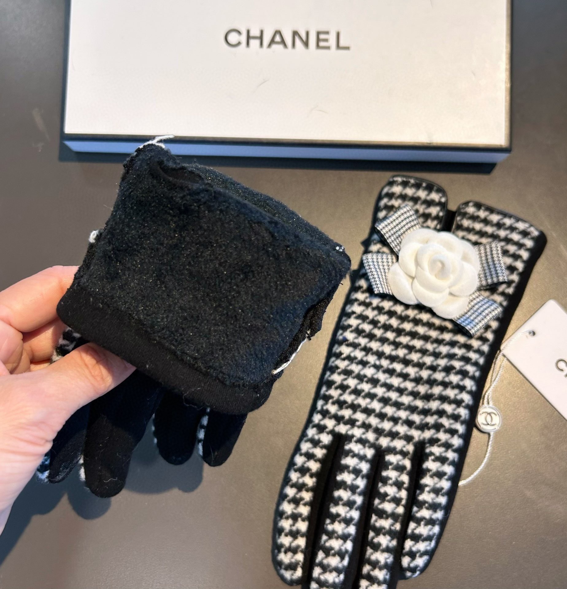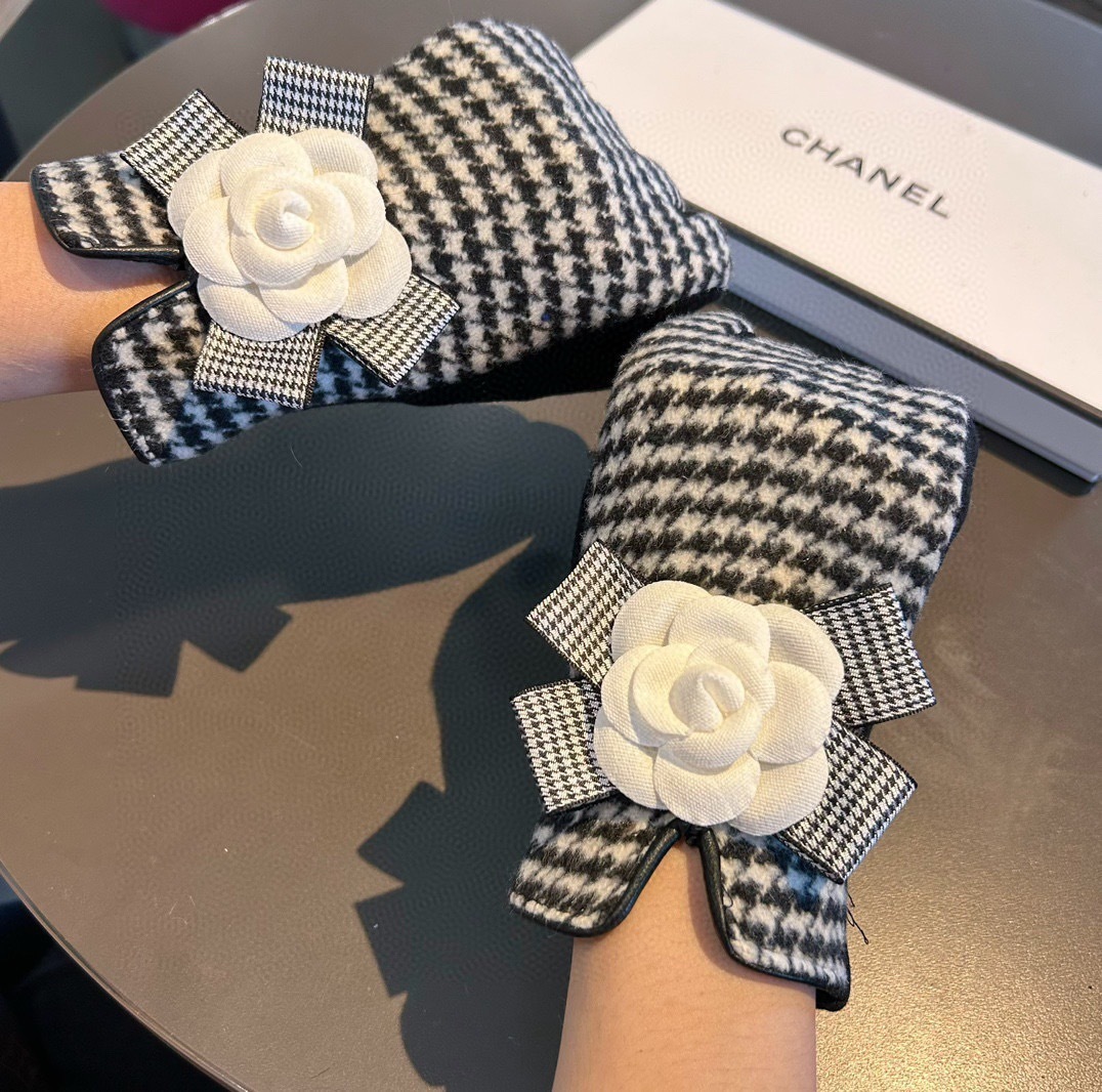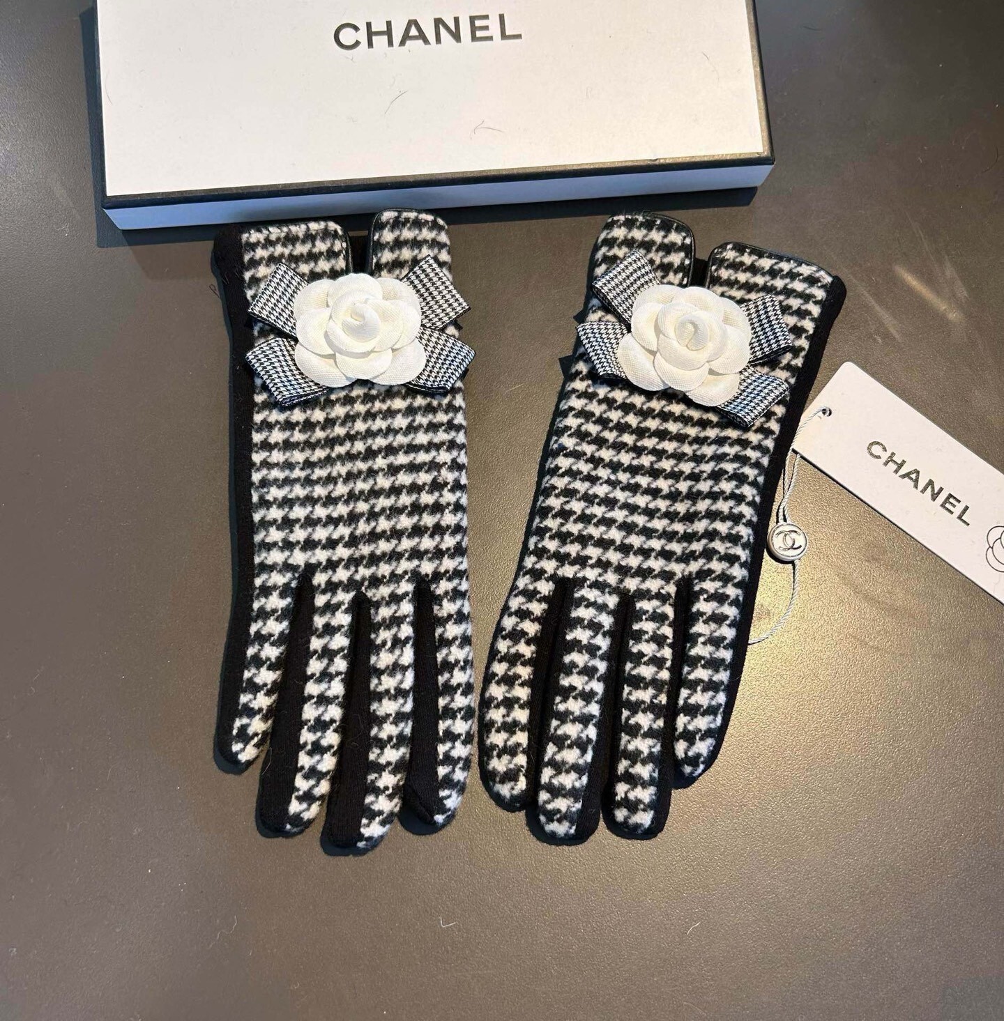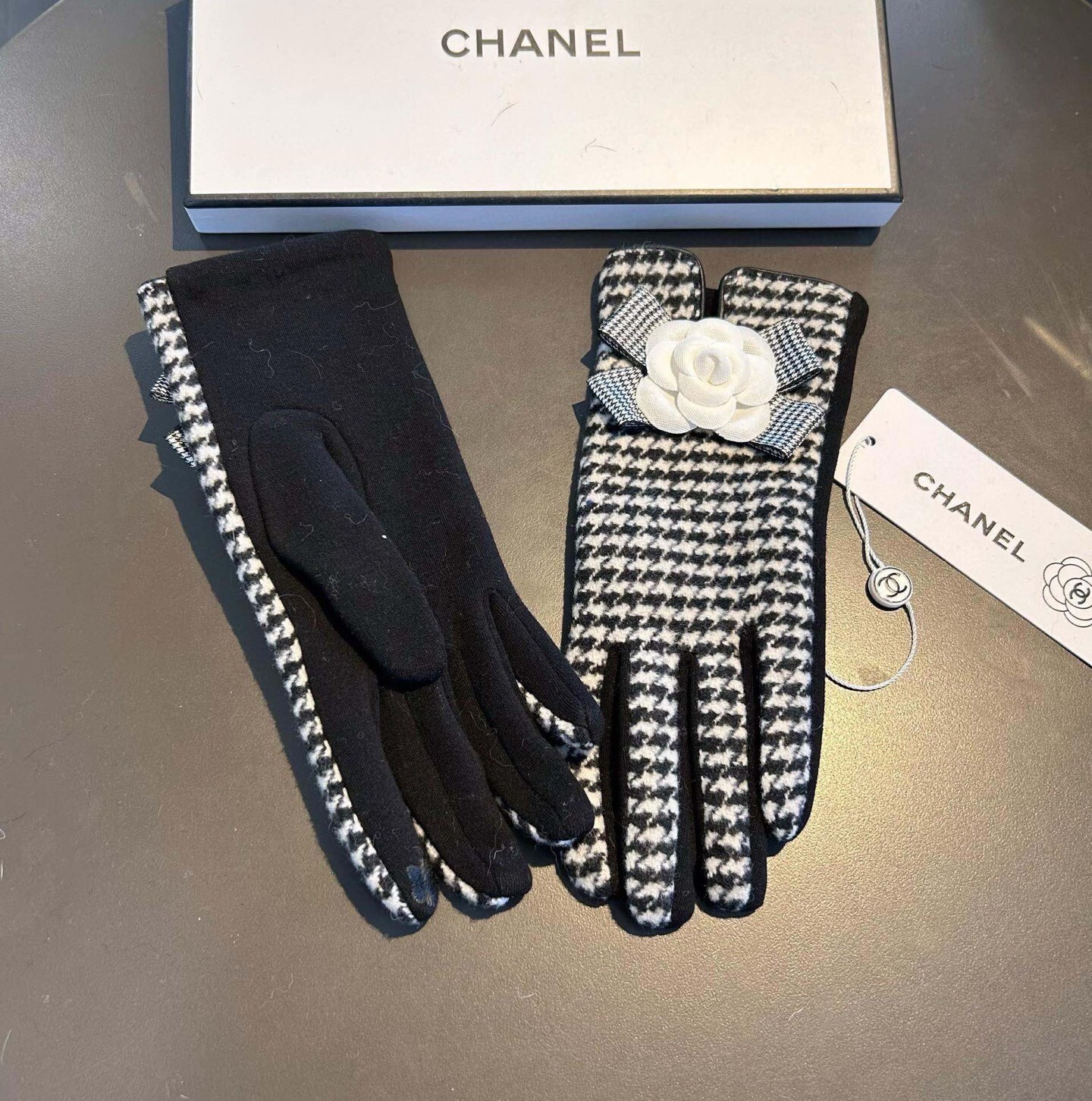 - Introducing the Chanel Houndstooth Gloves with White Camellia