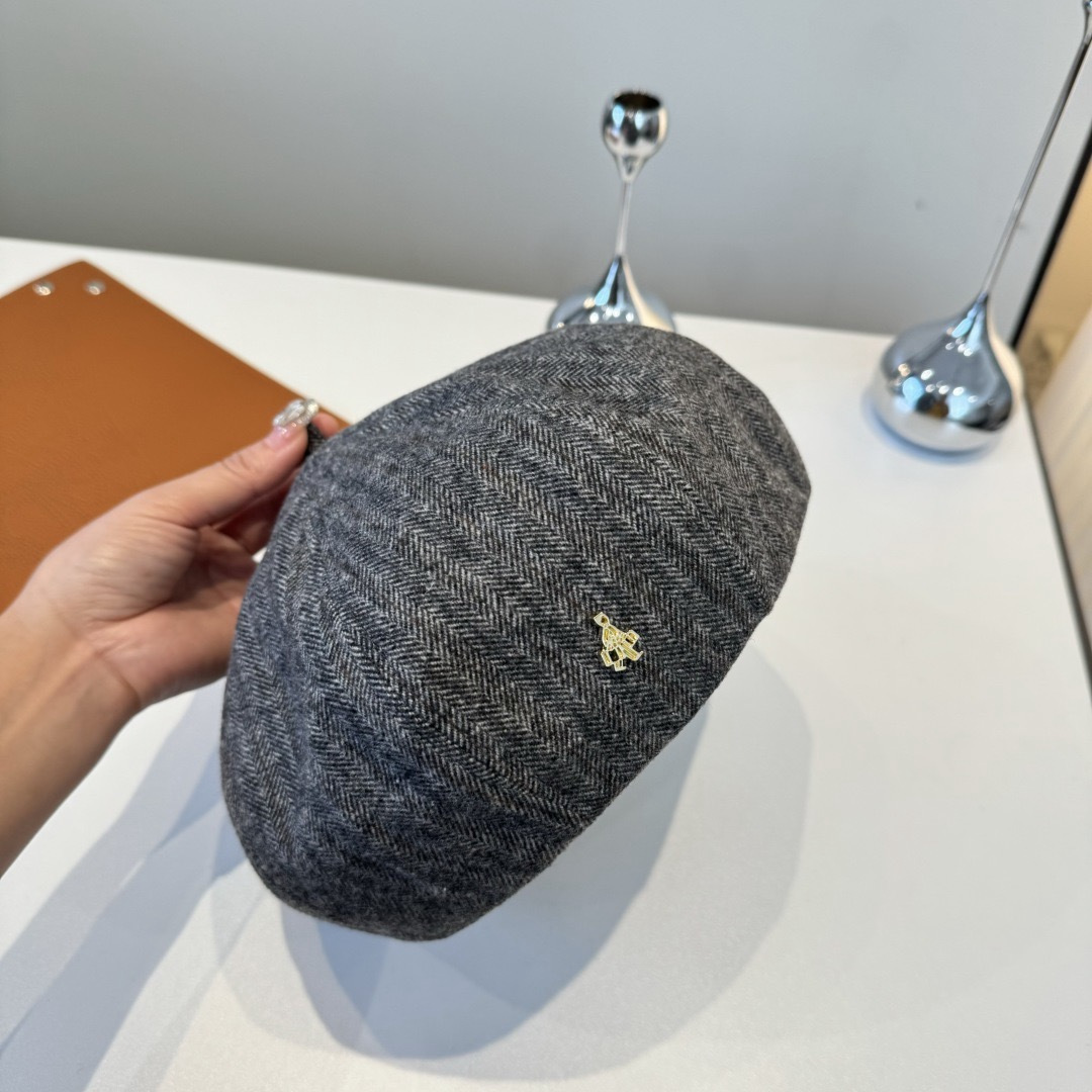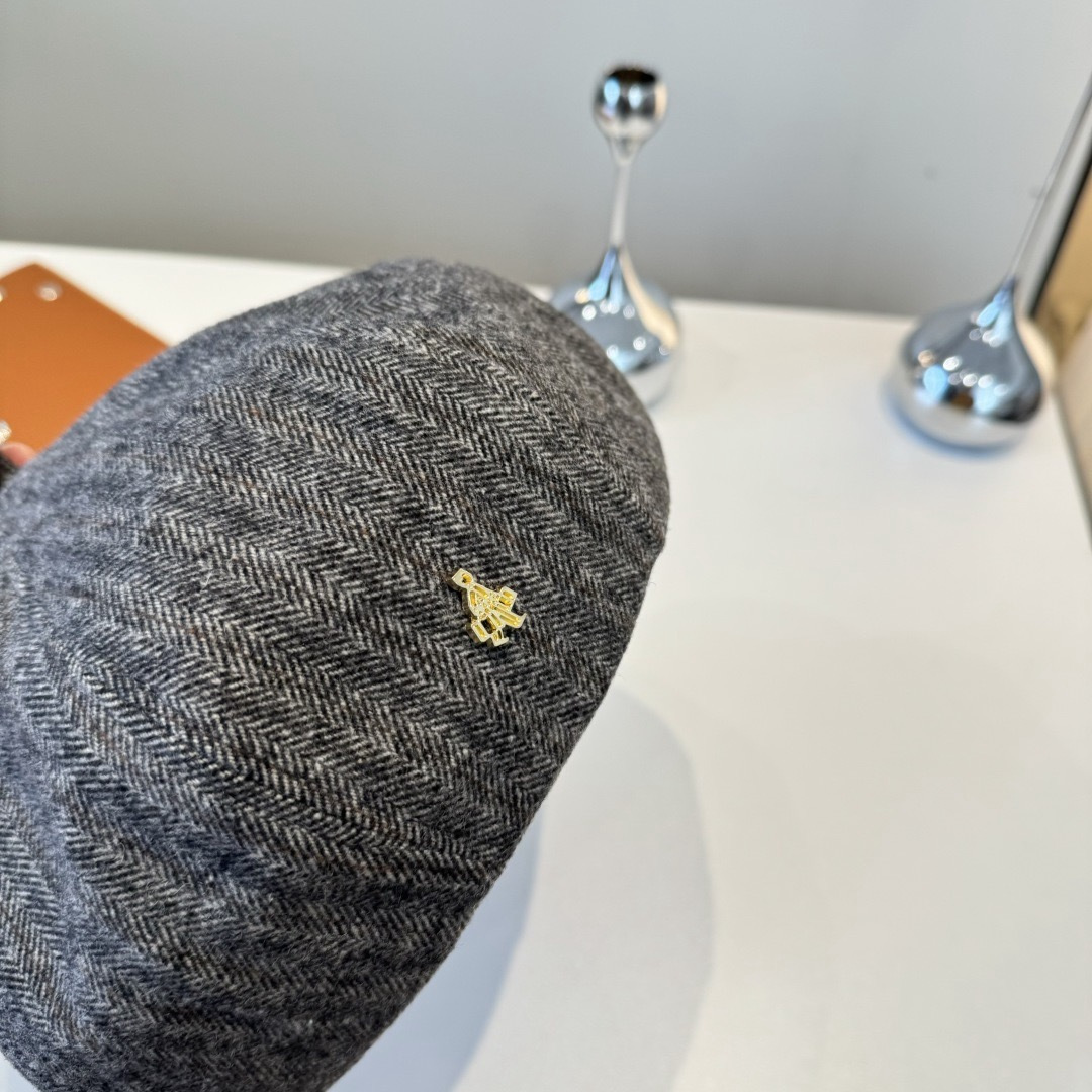 The beret is made from high-quality herringbone fabric, known for its durability and distinctive V-shaped weaving pattern. This fabric not only looks stylish but also provides excellent insulation, making it suitable for cooler months. The interior is lined with a soft, breathable material to ensure maximum comfort. The gold emblem, carefully placed on the side, adds a subtle sparkle that catches the eye without being ostentatious.