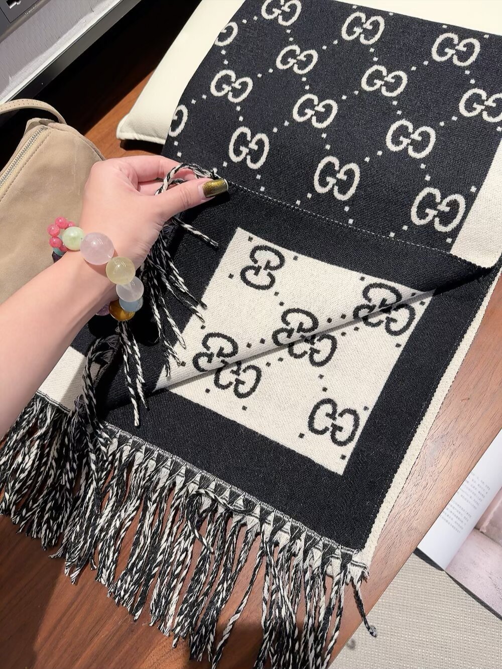- How to Style Your Gucci Black & White GG Wool Scarf