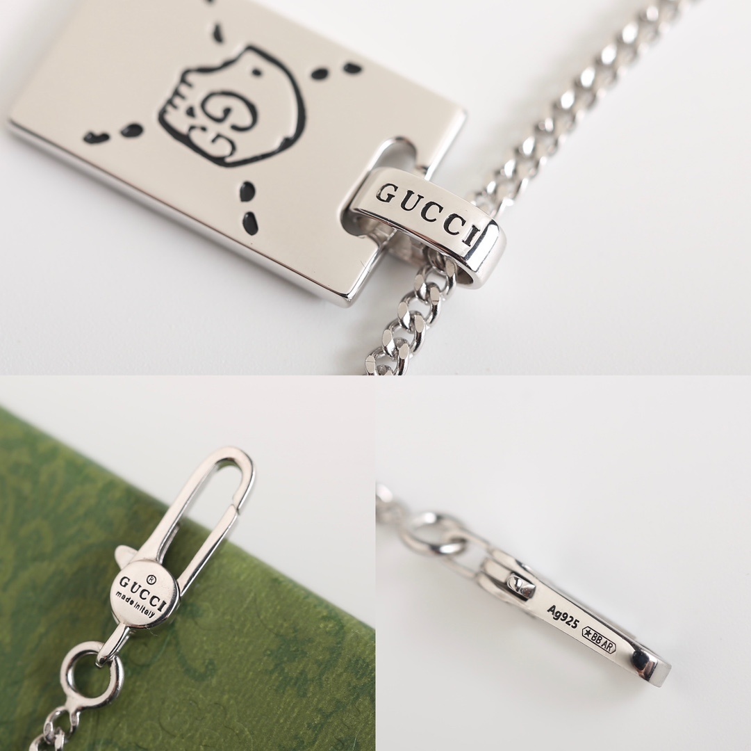 Additionally, it's a good idea to remove the necklace before engaging in activities that could cause damage, such as swimming, exercising, or doing household chores. By taking these simple precautions, you can keep your Gucci Silver Skull Tag Necklace looking its best for years to come. You can find other exquisite pieces in our store collection.