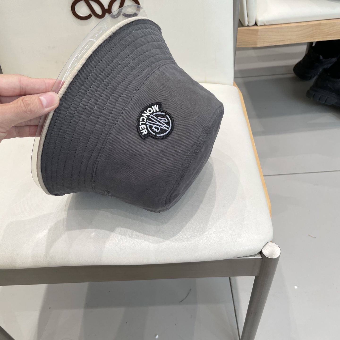 Q: Is the Loewe logo visible on the hat?
