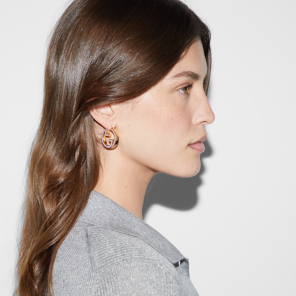 - Introducing the Gucci Gold Pink Enamel GG Hoop Earrings