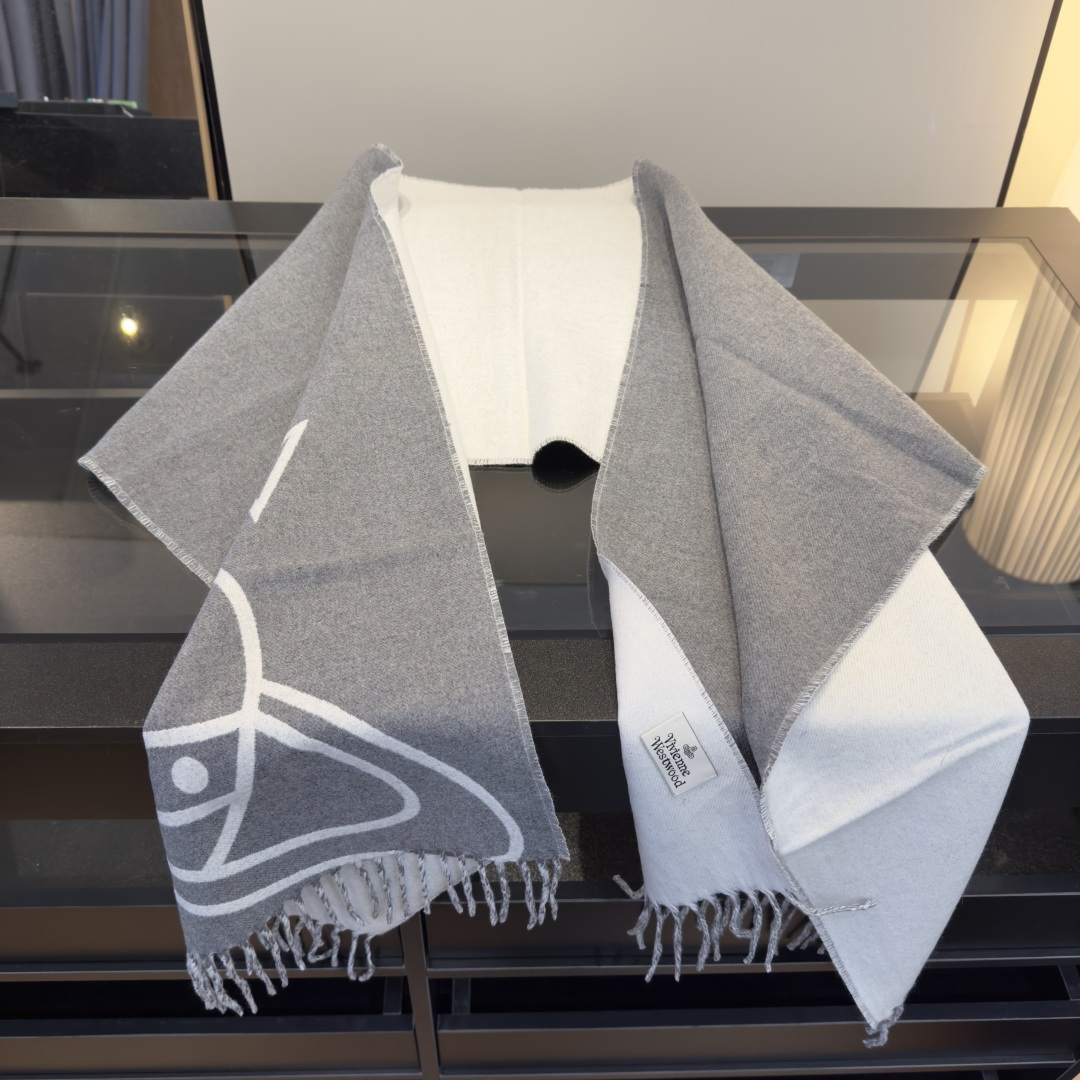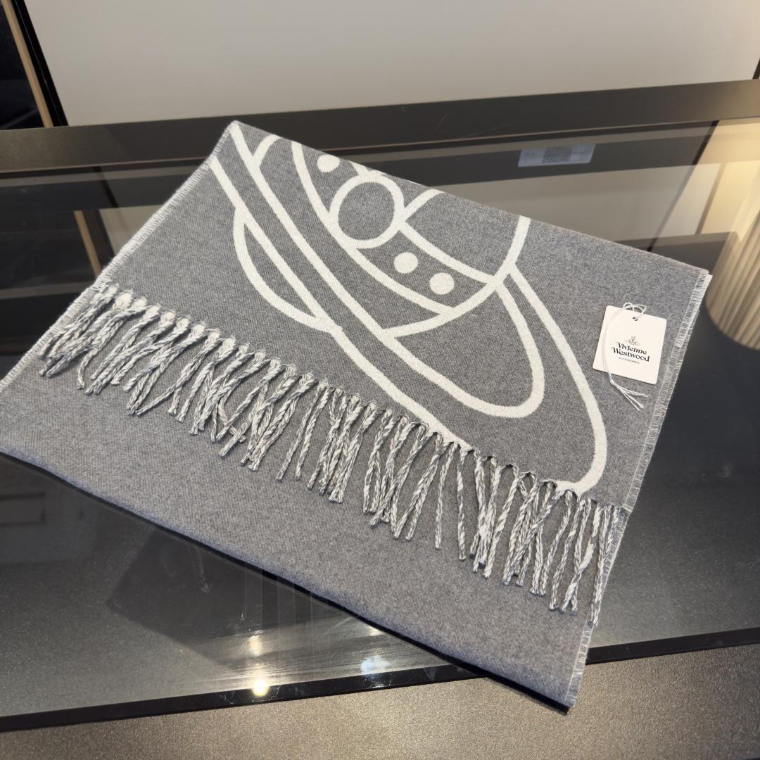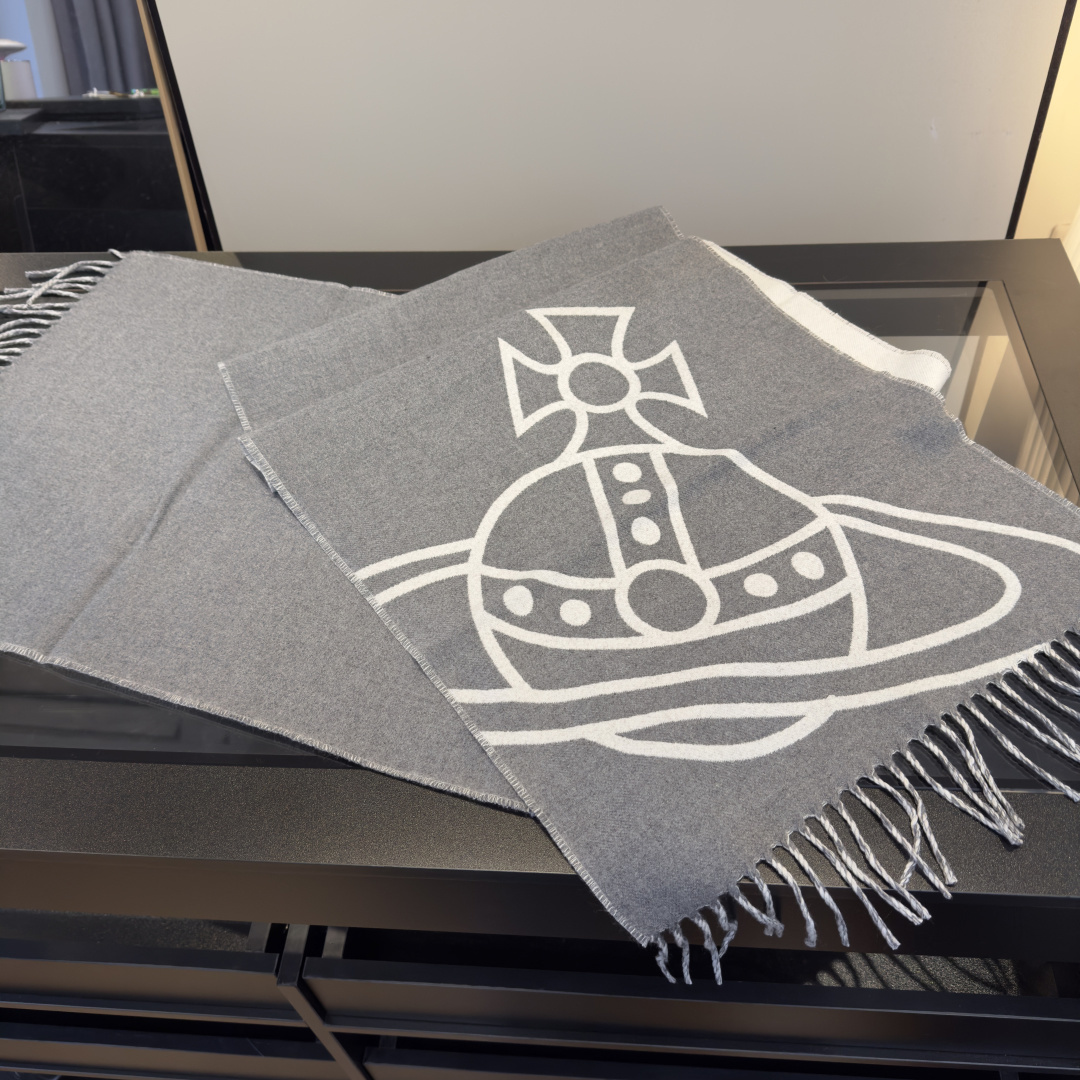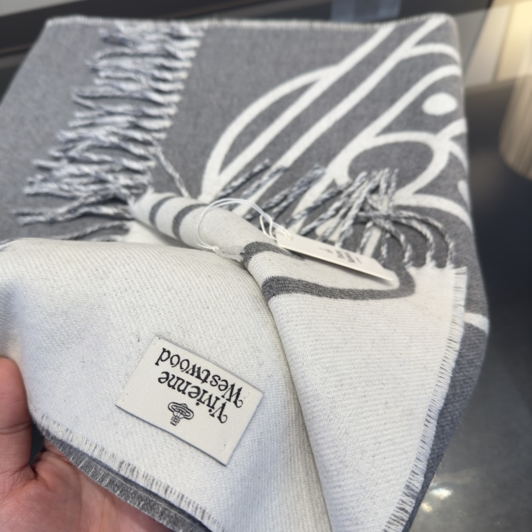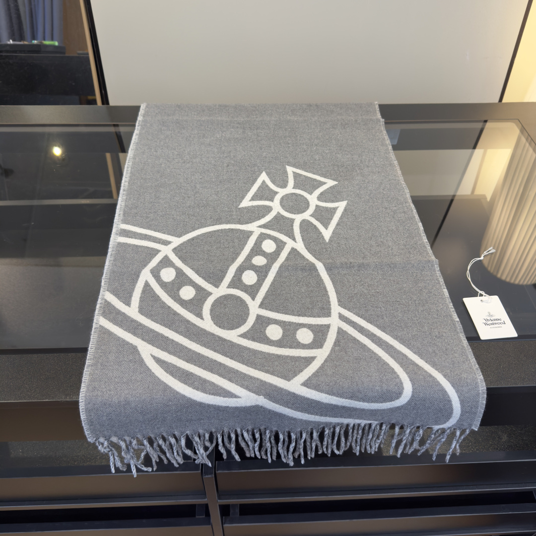 designer Vivienne Westwood Grey Orb Wool Scarf - Wrap yourself in luxury with the Vivienne Westwood Grey Orb Wool Scarf, a timeless accessory that effortlessly combines warmth, style, and iconic design. This scarf is more than just a winter essential; it's a statement piece that reflects sophistication and individuality. The striking Orb logo, a symbol of Vivienne Westwood's rebellious spirit, adds a touch of avant-garde flair to any outfit. Crafted from the finest wool, this scarf promises unparalleled comfort and durability, making it a must-have addition to your wardrobe. The soft grey hue offers versatility, allowing it to complement a wide range of colors and styles. Whether you're dressing up for a special occasion or adding a touch of elegance to your everyday look, the Vivienne Westwood Grey Orb Wool Scarf is the perfect choice.