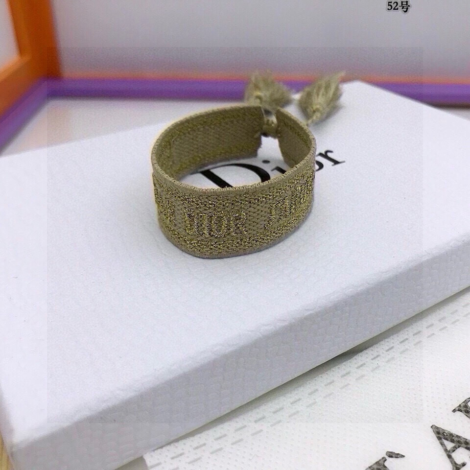 Dior Beige Woven Bracelet - Elevate your accessory game with the Dior Beige Woven Friendship Bracelet. This exquisite piece is more than just a bracelet; it's a statement of style, friendship, and luxury. Crafted with meticulous attention to detail, this bracelet features a delicate woven design in a sophisticated beige hue, making it a versatile addition to any jewelry collection. The subtle gold accents add a touch of elegance, while the tassel details bring a playful and bohemian vibe. Whether you’re dressing up for a special occasion or adding a touch of flair to your everyday look, the Dior Beige Woven Friendship Bracelet is the perfect choice.