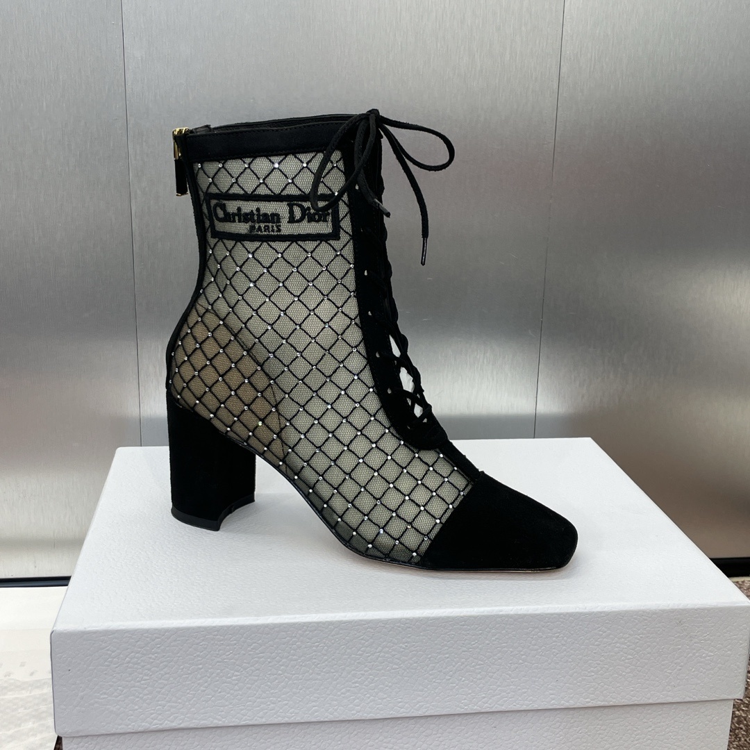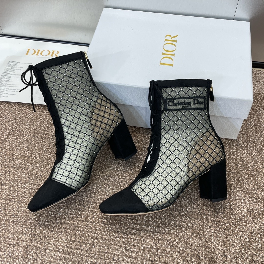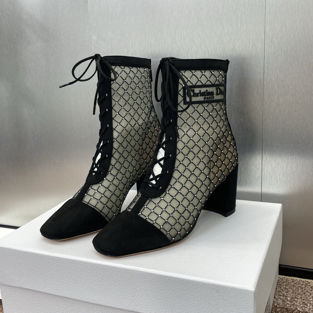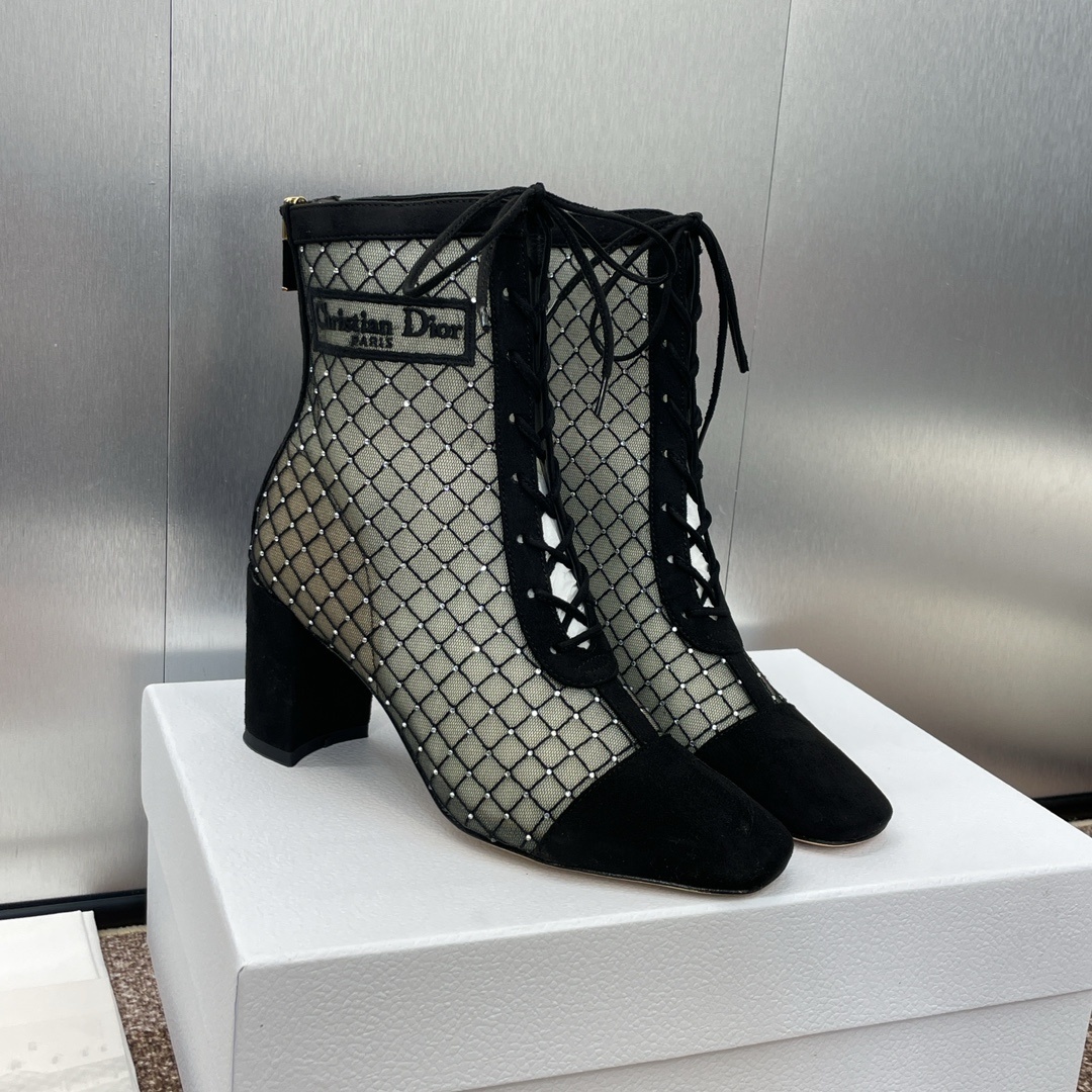 Why Choose Dior Black Mesh Lace-Up Ankle Boots?