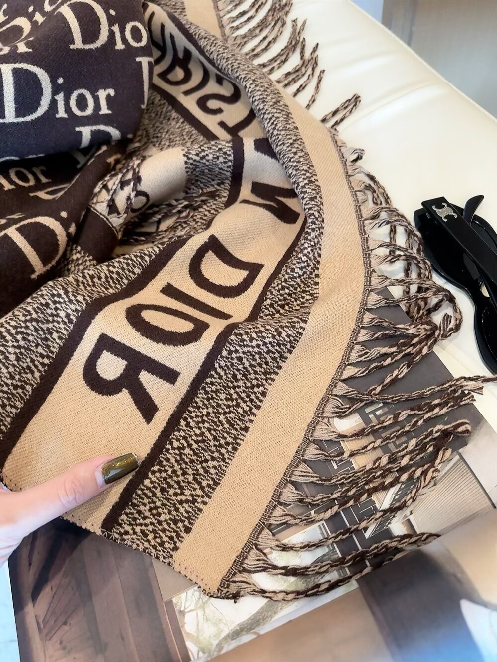 Dior Brown Logo Wool Shawl - Fringe Trim, Warm
