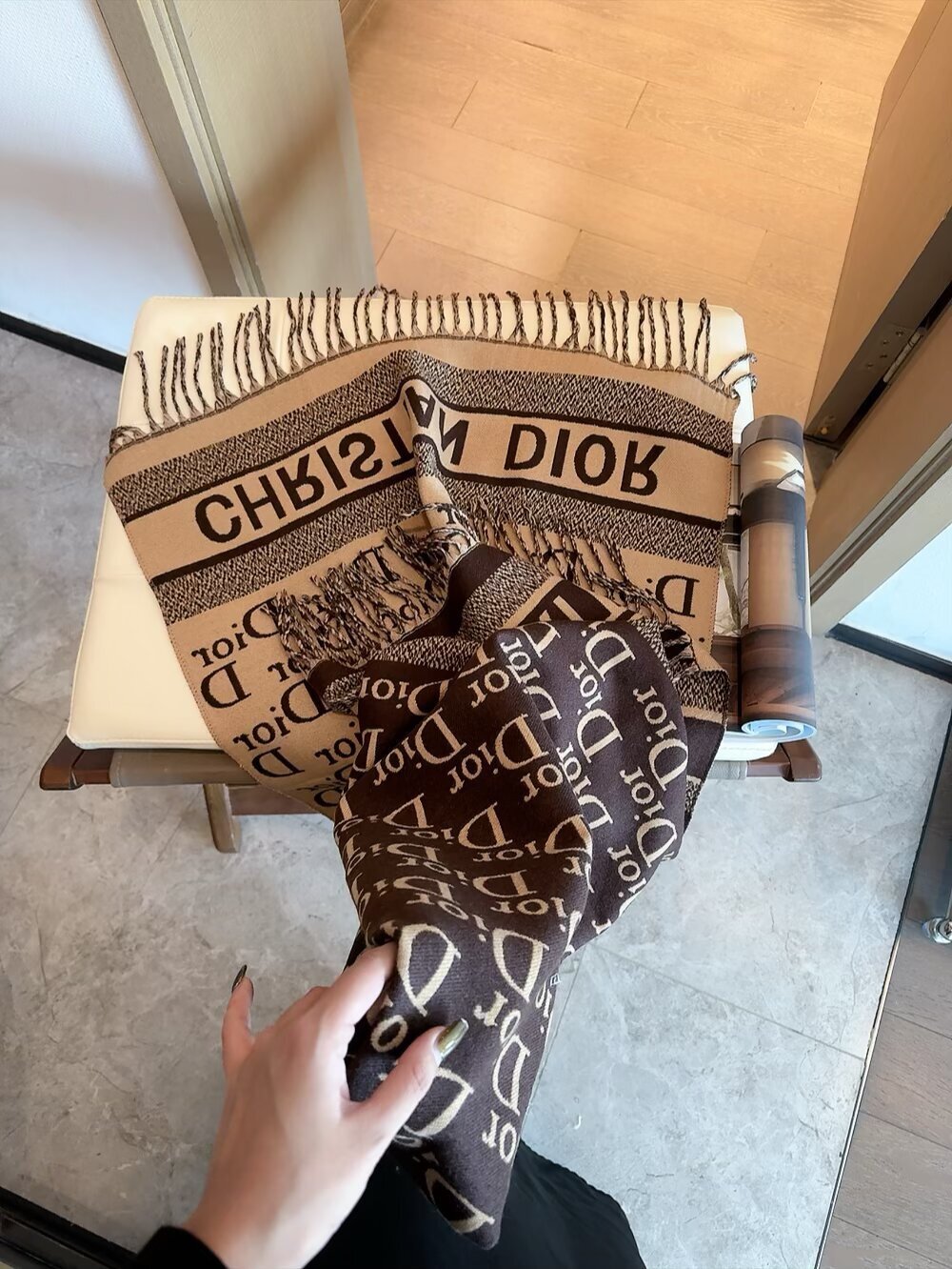 Whether you're dressing up for a special event or simply adding a touch of elegance to your everyday look, this shawl is the perfect choice. The luxurious wool material feels incredibly soft against the skin, providing both warmth and comfort. The iconic Dior logo adds a touch of prestige, making this shawl a true statement piece. Its generous size allows for versatile styling, whether draped over the shoulders, wrapped around the neck, or even used as a chic blanket on chilly evenings. The Dior Brown Logo Wool Shawl is more than just an accessory; it's a symbol of timeless elegance and refined taste.
