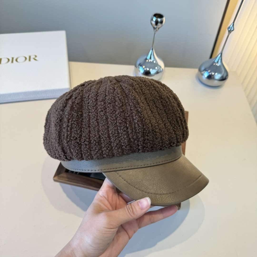 Dior Brown Shearling Newsboy Cap - Designer Style