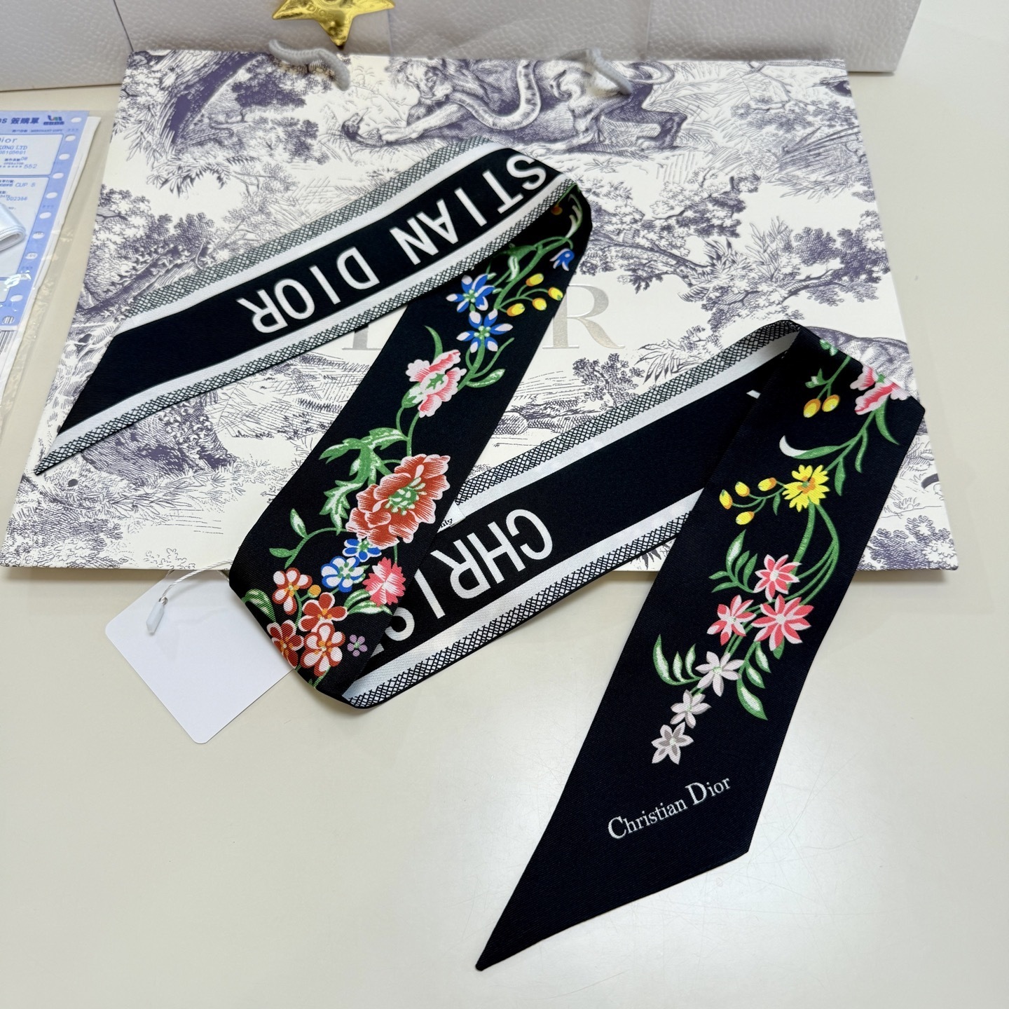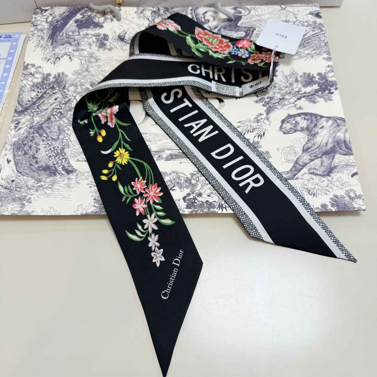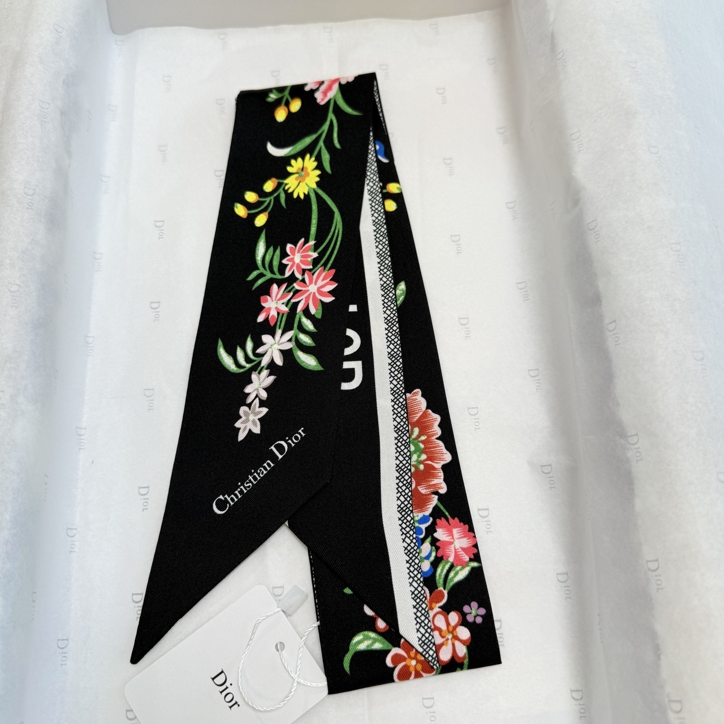 Dior Floral Silk Skinny Scarf Black - Dior Floral Silk Skinny Scarf
