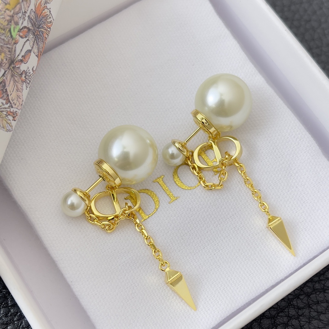 The versatility of the Dior Golden Pearl Drop Earrings makes them an excellent choice for any occasion. Whether you're dressing up for a formal event or adding a touch of glamour to your everyday look, these earrings will elevate your style and make you feel confident and beautiful. The classic design ensures that they will never go out of style, making them a valuable addition to your jewelry collection.