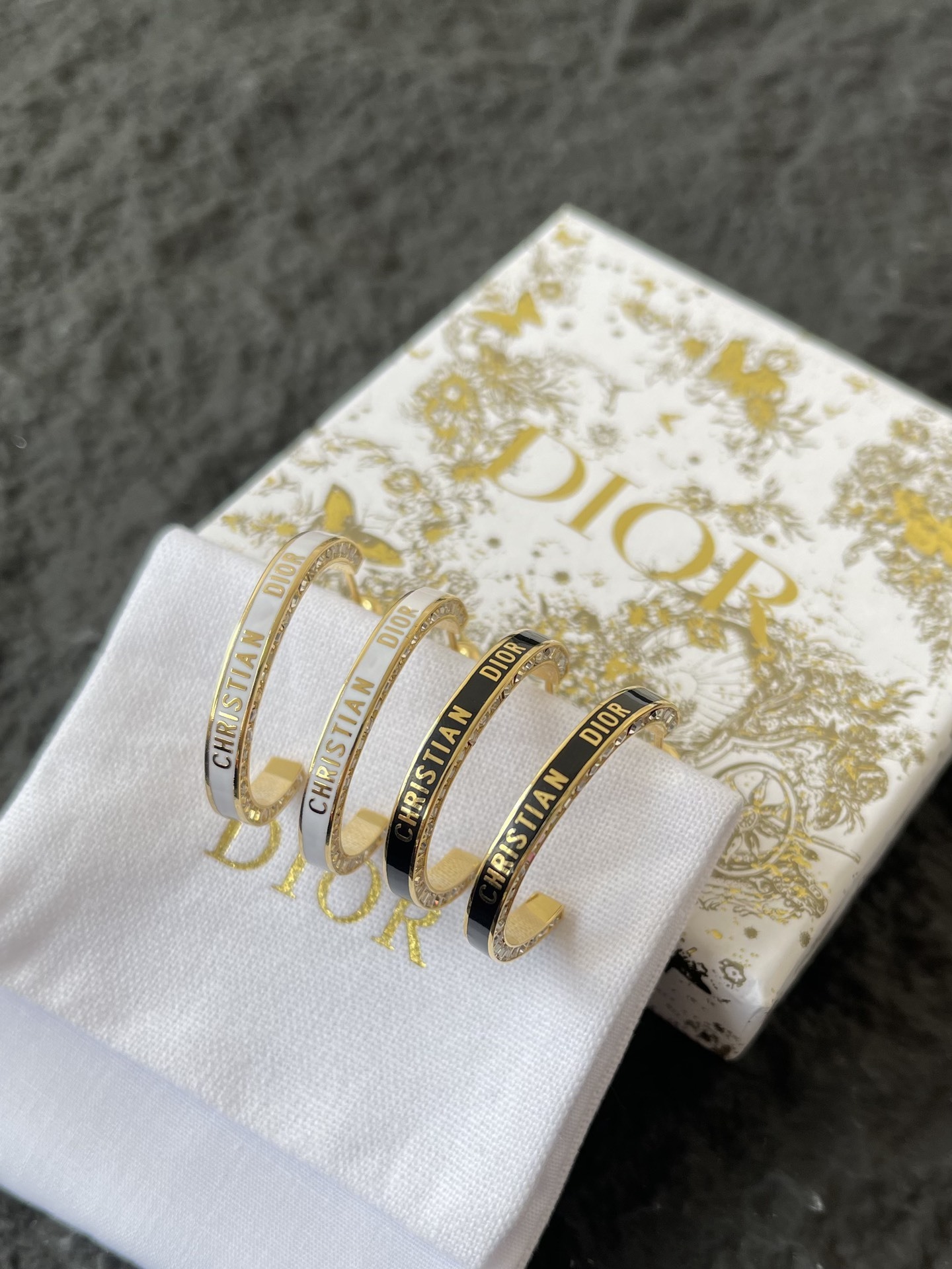 Elevate your ensemble with the captivating allure of the Dior Night Code Hoop Earrings. These exquisite earrings are a testament to Dior's unwavering commitment to luxury, innovation, and timeless elegance. Featuring a sophisticated blend of gold-finish metal, white crystals, and black lacquer detailing, these hoop earrings are designed to make a statement. The Dior Night Code Hoop Earrings seamlessly blend classic design with modern flair, making them a versatile accessory for any occasion. Whether you're attending a glamorous event or simply want to add a touch of sophistication to your everyday look, these earrings are the perfect choice.