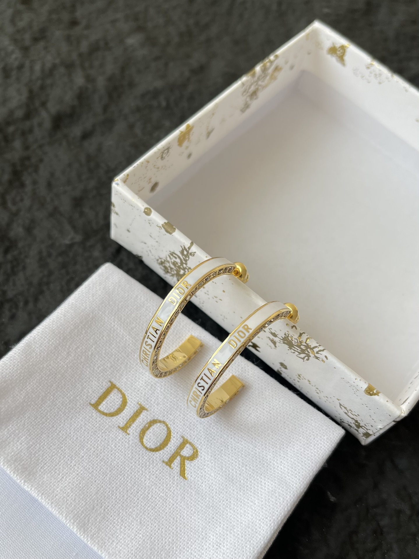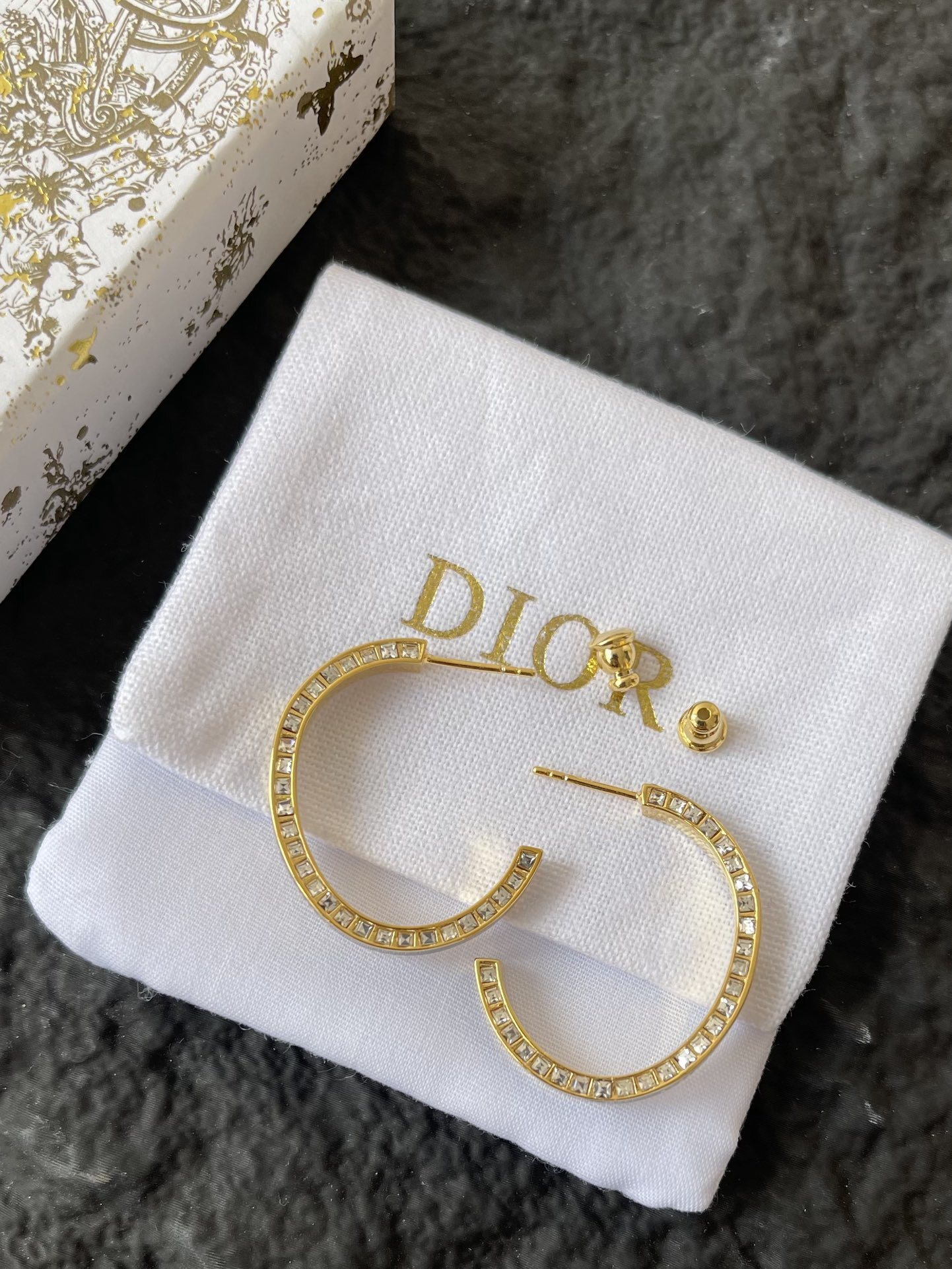 The earrings feature the iconic 'CHRISTIAN DIOR' signature, subtly incorporated into the design. This detail not only showcases the brand's heritage but also adds a touch of exclusivity to the piece. The secure and comfortable clasp ensures that the earrings stay in place, allowing you to wear them with confidence throughout the day or night.