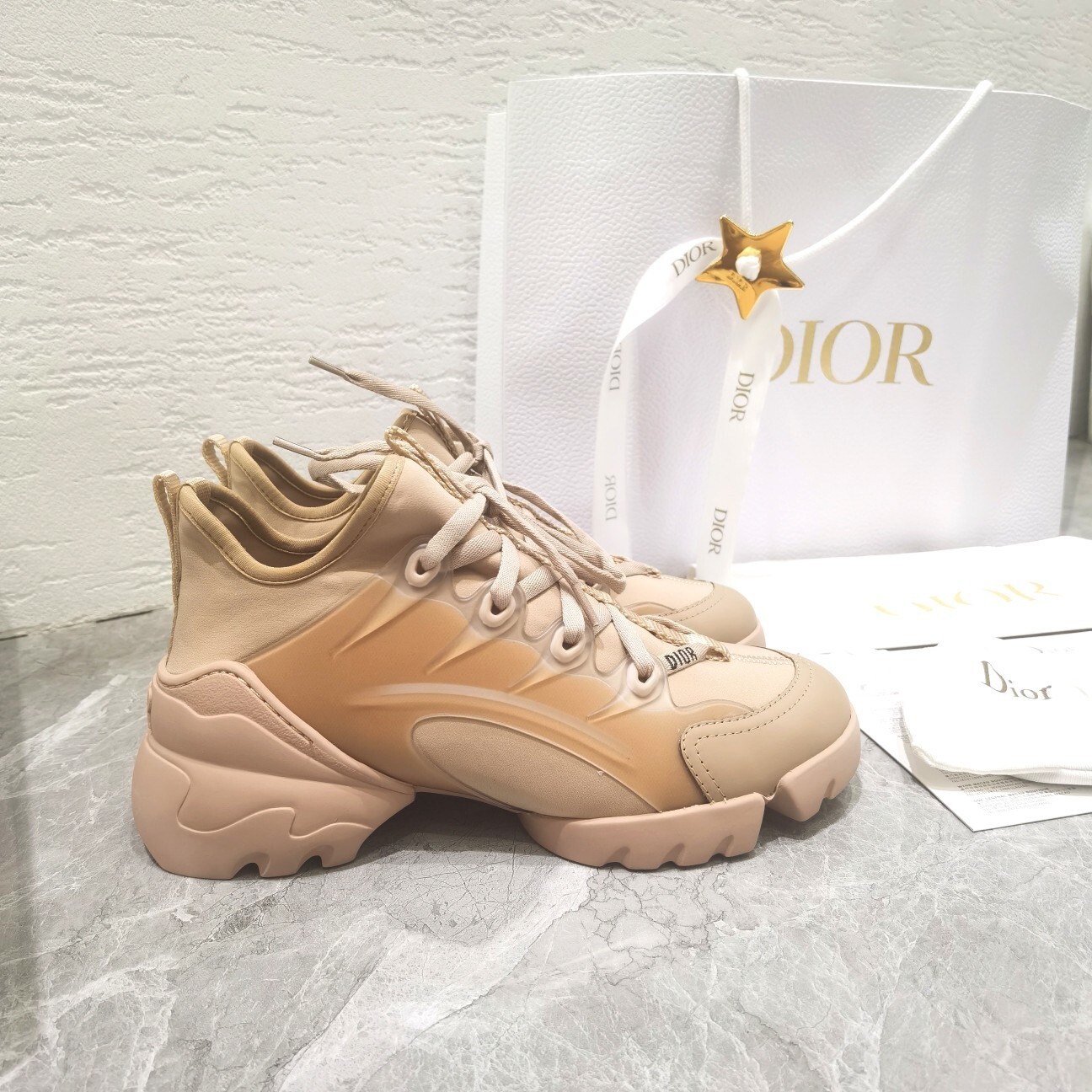 The Dior Nude Tone Sneakers boast several outstanding features that set them apart from ordinary sneakers. The sculpted sole is not only visually appealing but also provides excellent support and cushioning. This ensures that you can wear these sneakers for extended periods without experiencing discomfort. The upper part of the sneakers is crafted from high-quality materials that are both durable and breathable, ensuring long-lasting wear.