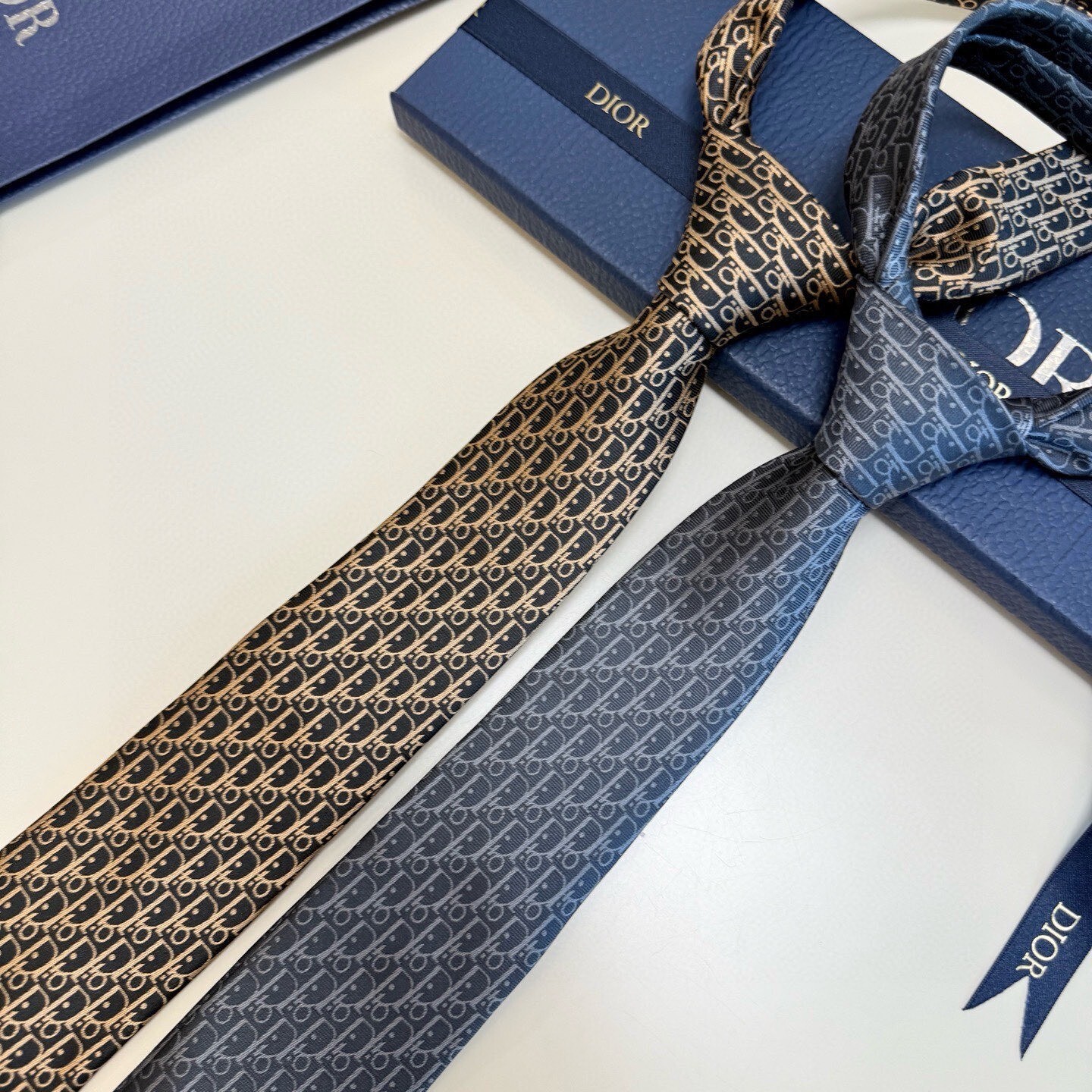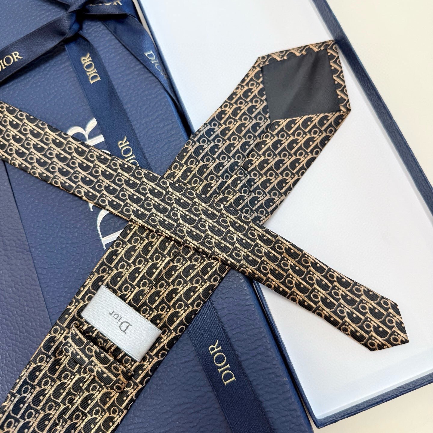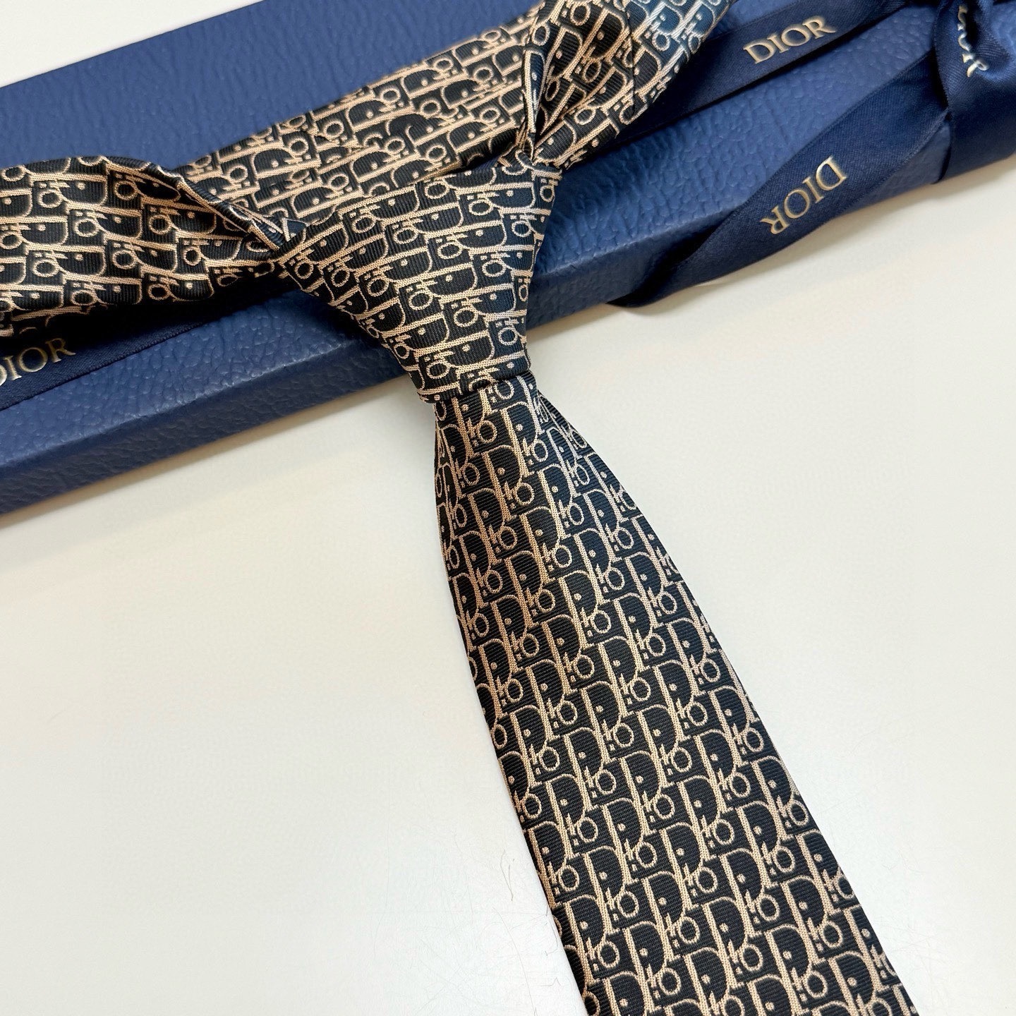 Q: Is the Dior logo visible on the tie?