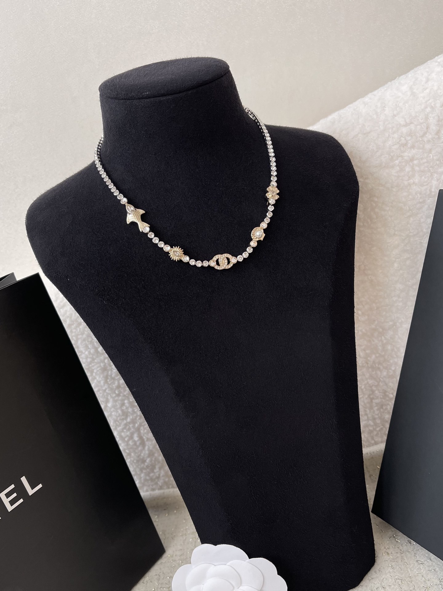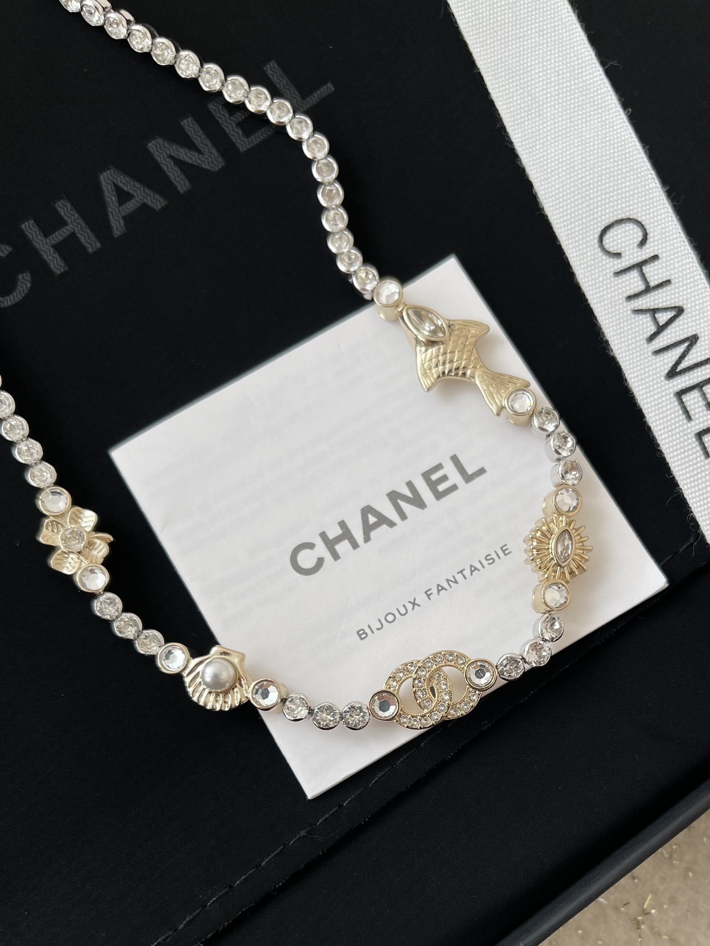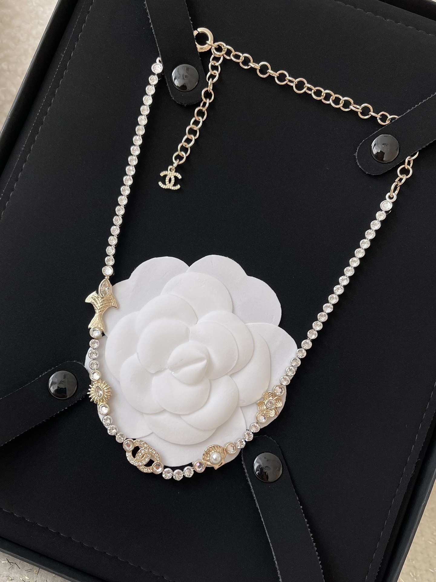 To ensure that your Dior Silver Crystal Logo Choker remains in pristine condition, proper care and maintenance are essential. Avoid exposing the choker to harsh chemicals, such as chlorine or cleaning agents, as these can damage the silver and dull the crystals. When you're not wearing the choker, store it in its original box or a soft pouch to protect it from scratches and dust. Clean the choker regularly with a soft, dry cloth to remove any dirt or oils that may accumulate over time. If necessary, you can use a mild jewelry cleaner specifically designed for silver and crystals, but be sure to follow the instructions carefully to avoid any damage. Avoid wearing the choker while swimming, showering, or engaging in strenuous activities, as this can expose it to excessive moisture and impact.