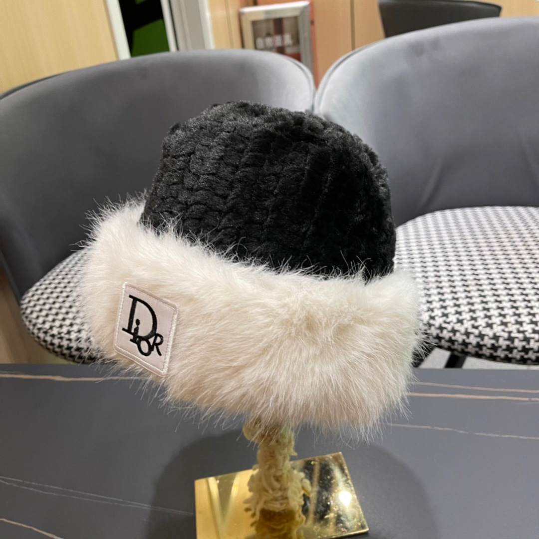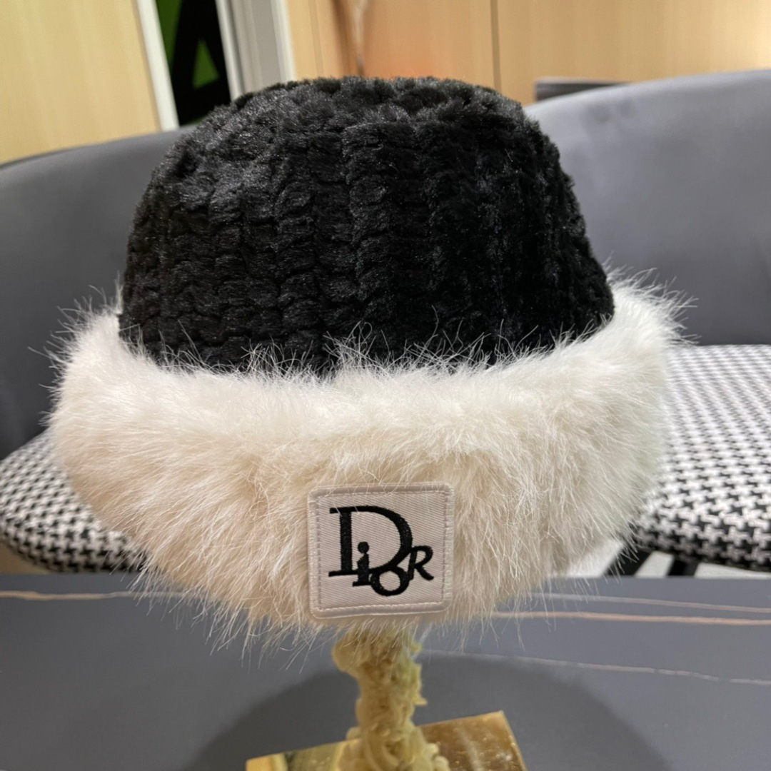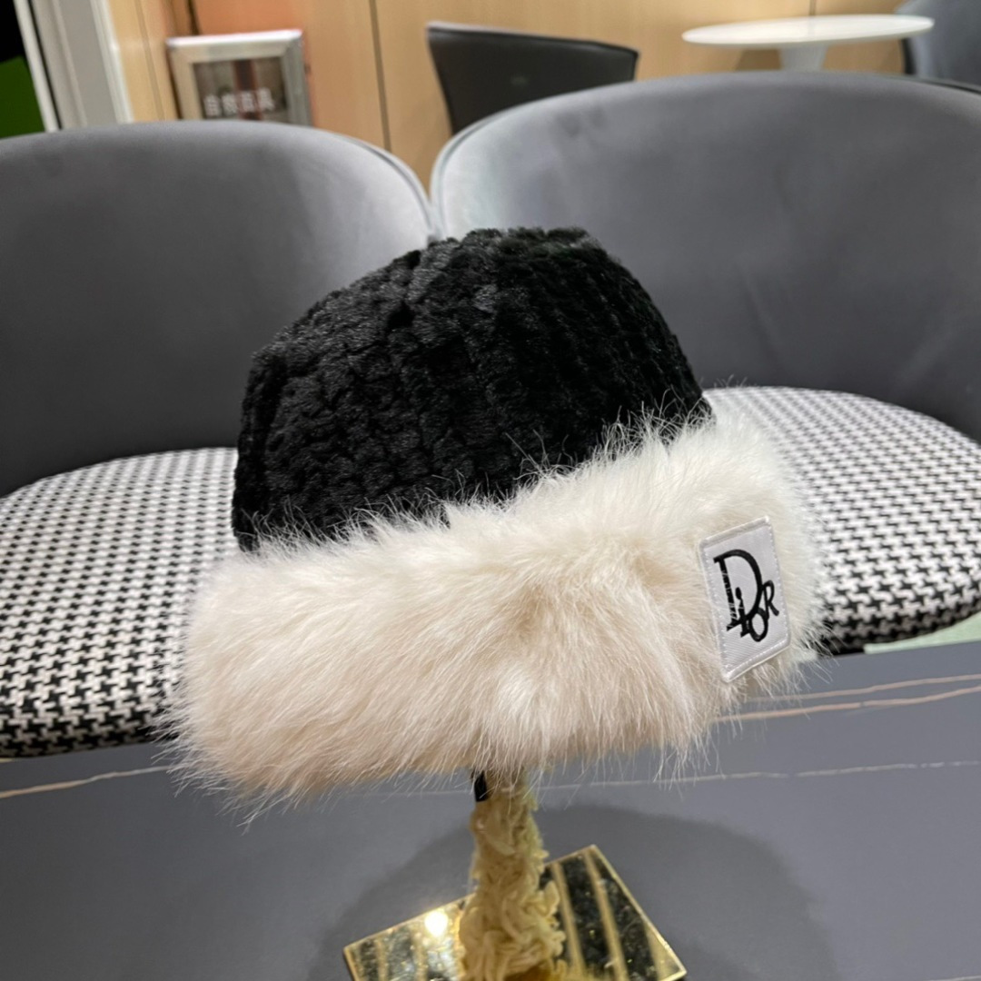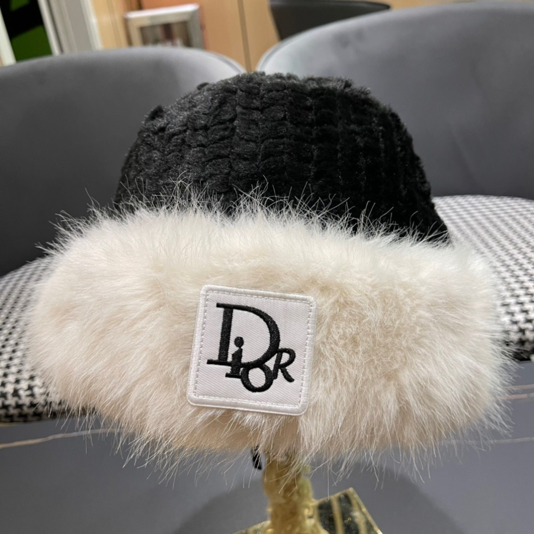 Dior White Furry Bucket Hat - Designer Winter Style