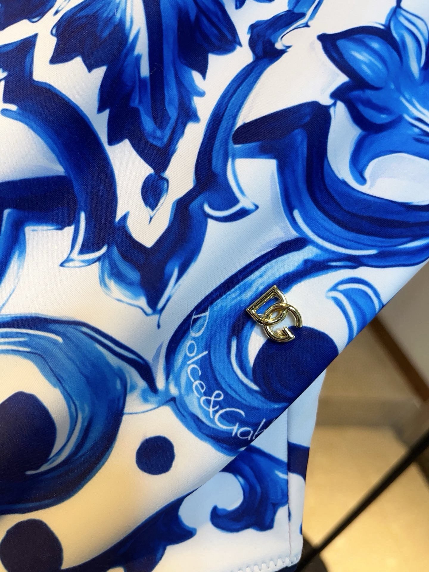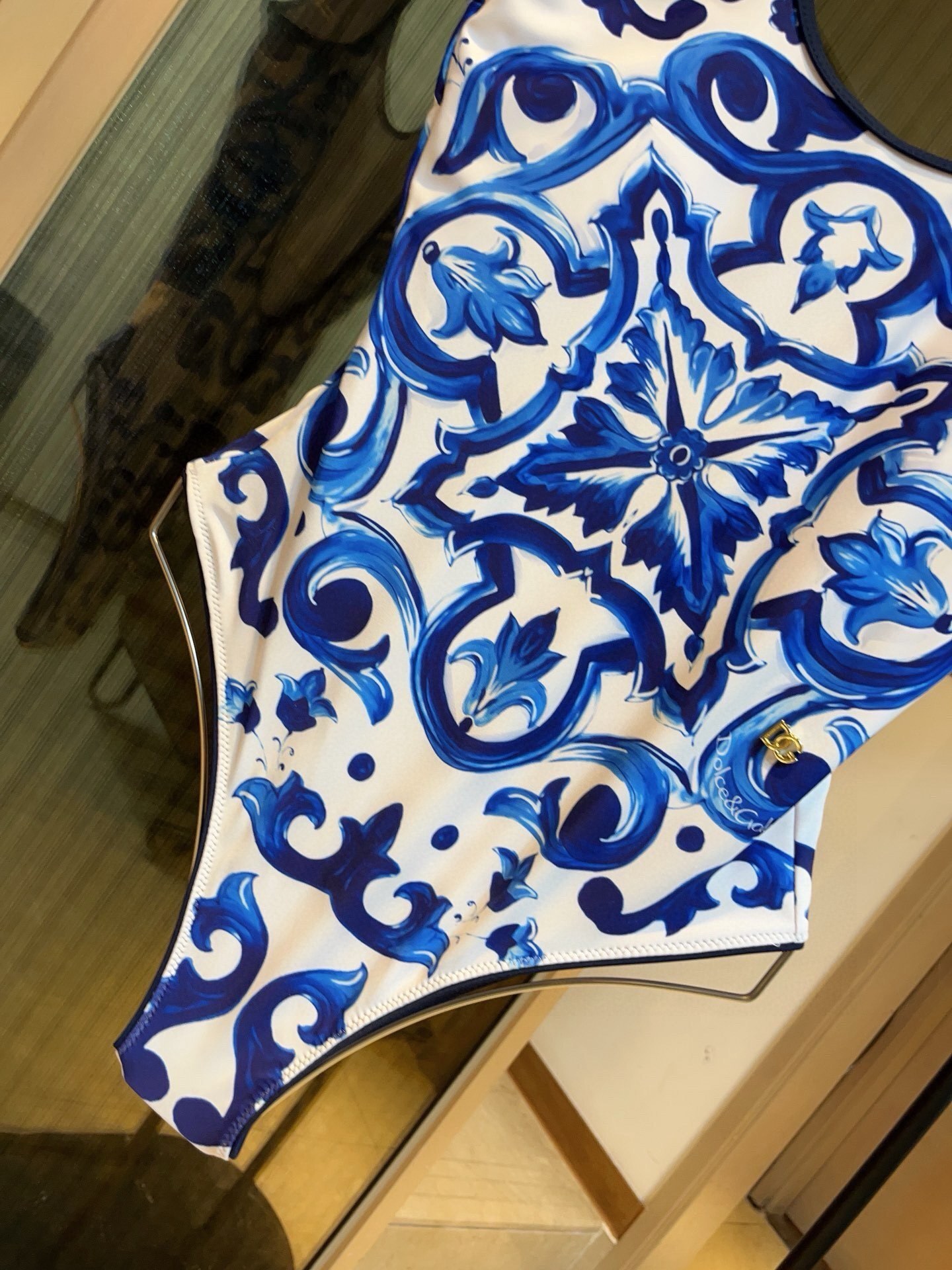 Indulge in the allure of Italian fashion with our exquisite one-piece swimsuit, inspired by the timeless elegance of Dolce & Gabbana. This premium quality swimsuit features a captivating blue and white pattern reminiscent of classic Italian ceramics, ensuring you'll turn heads wherever you go.