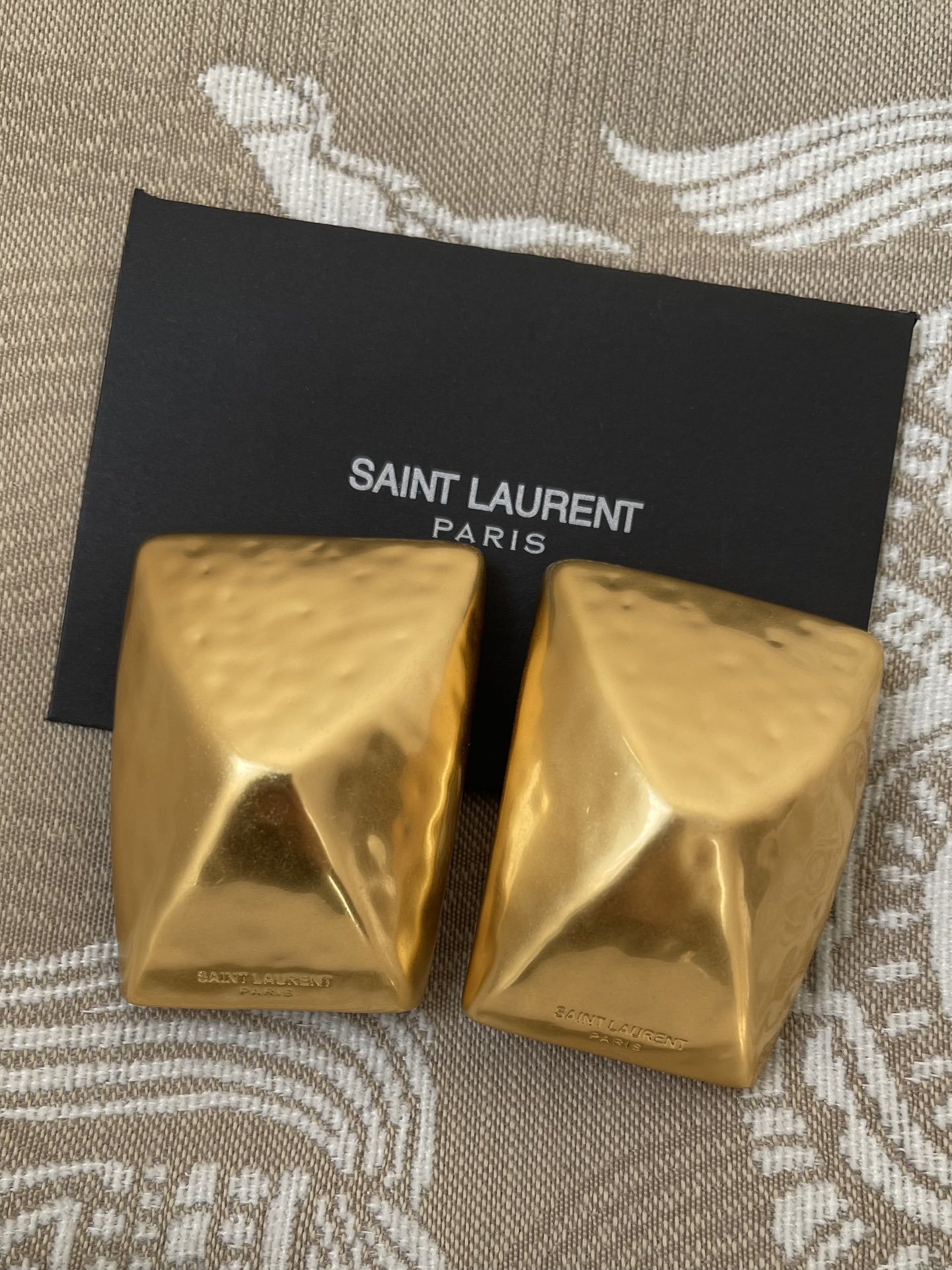 The attention to detail in the craftsmanship is evident in every aspect of these earrings. From the precise setting of the stones to the smooth finish of the gold-tone metal, every element is carefully considered to ensure the highest quality. These earrings are a true reflection of Saint Laurent's dedication to luxury and style, making them a valuable investment for any fashion-conscious individual.