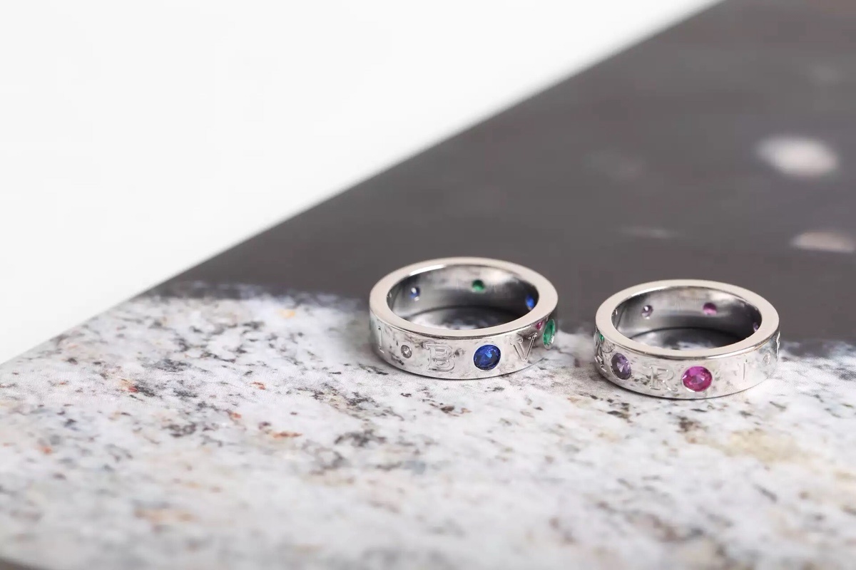 The Bulgari Silver Gemstone Ring is crafted from high-quality sterling silver and adorned with various colored gemstones. The silver band is polished to a smooth finish, providing a comfortable fit and a lasting shine. The gemstones are carefully selected for their brilliance and clarity, adding a touch of color and sparkle to the overall design.