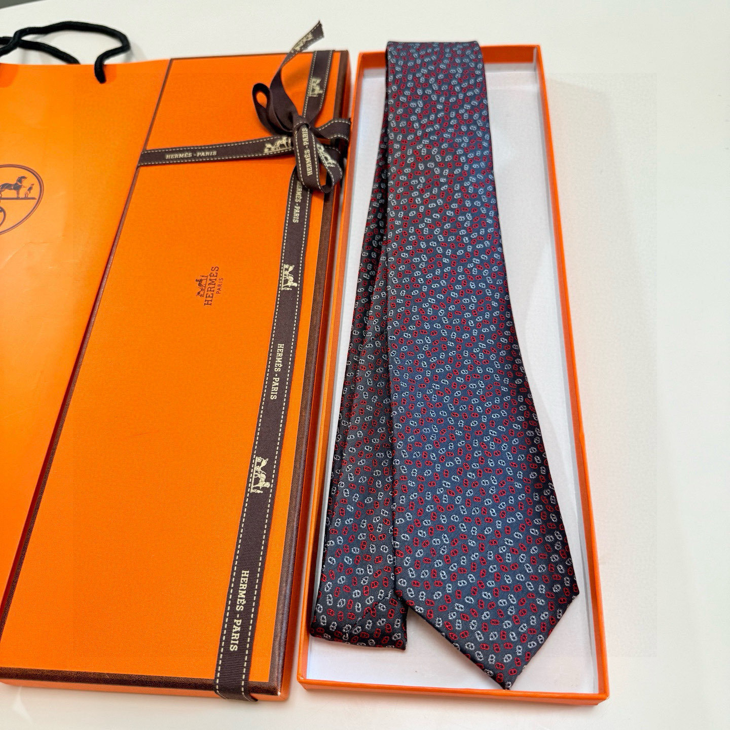 Q: How do I store the Hermes Navy Link Print Silk Tie?