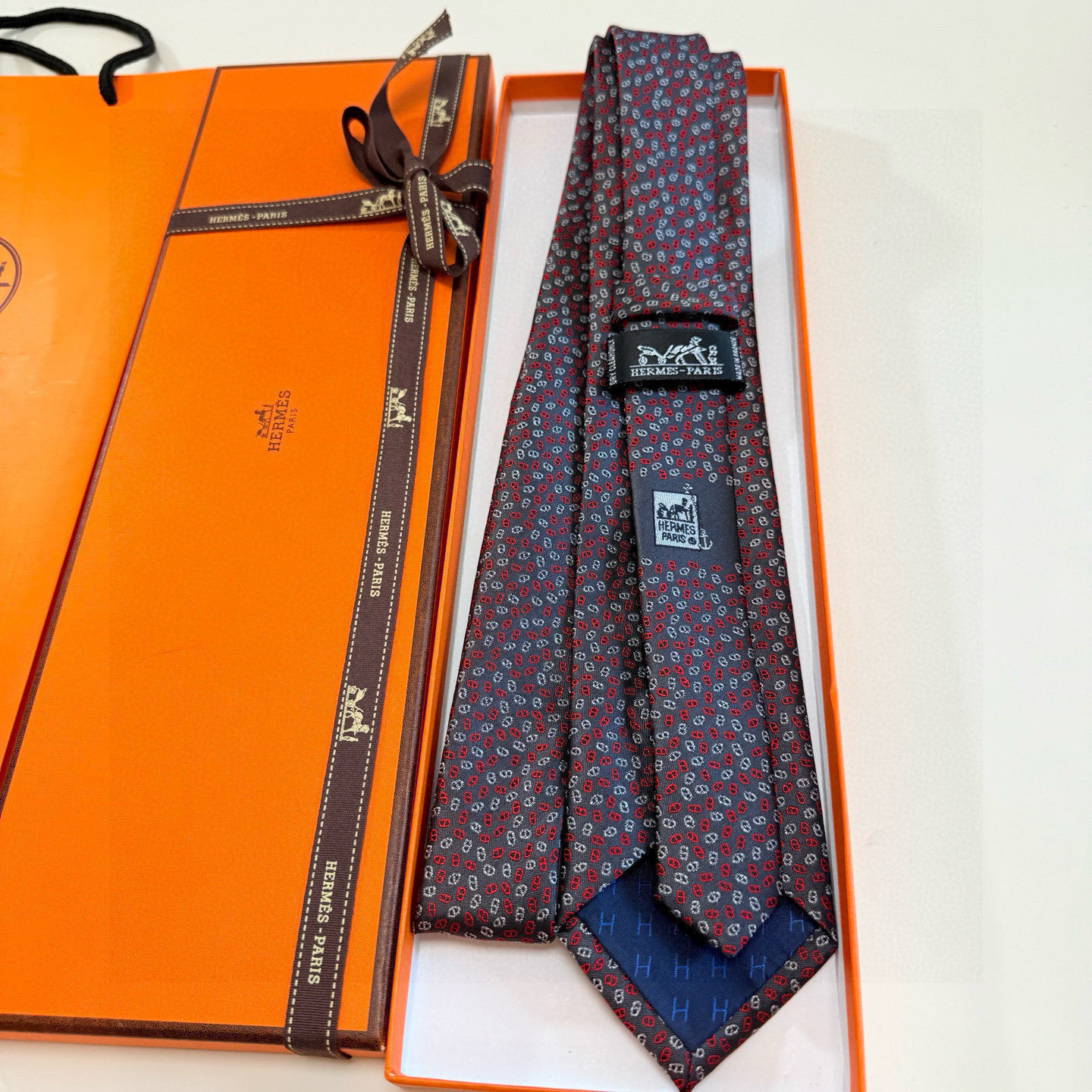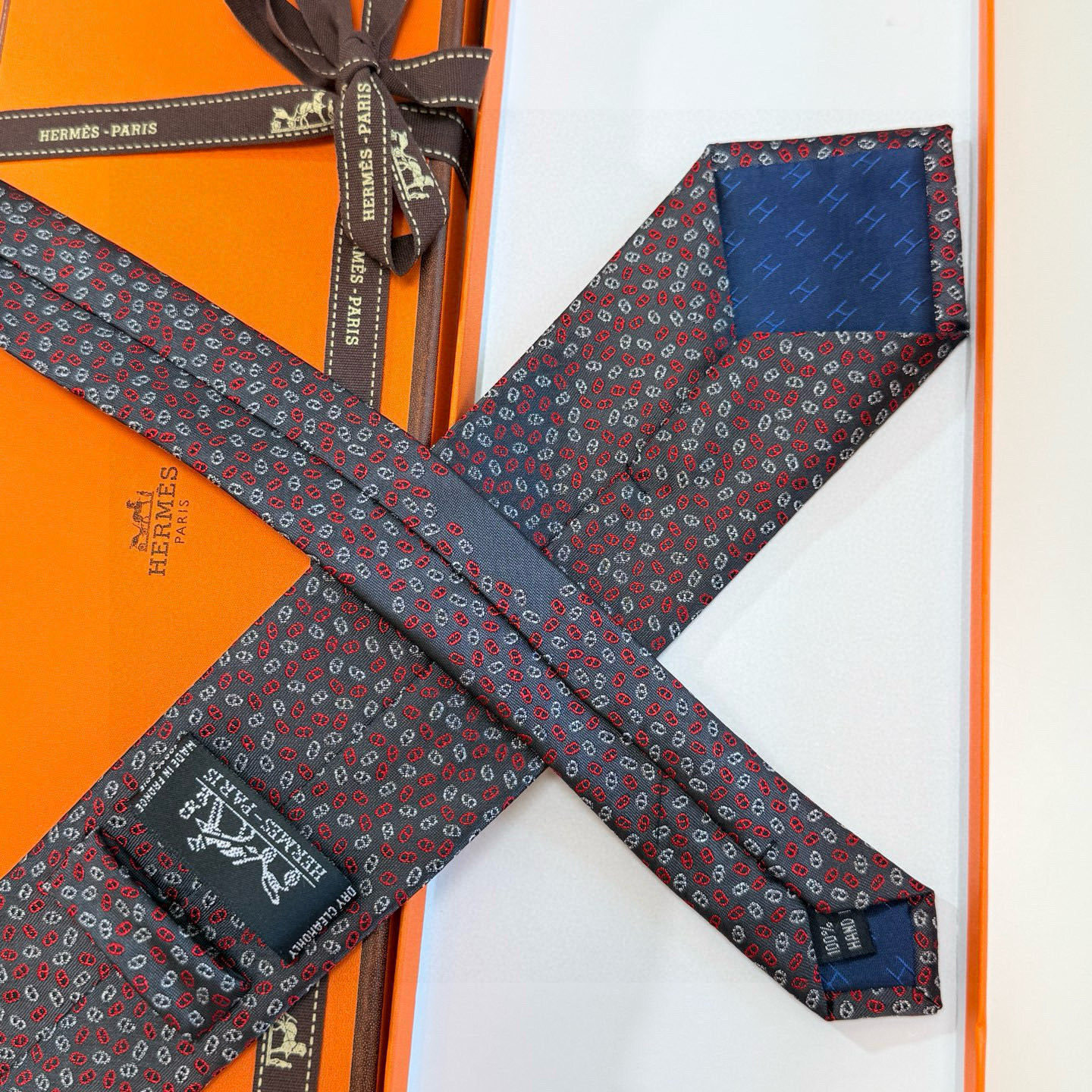 - How to Care for Your Hermes Navy Link Print Silk Tie