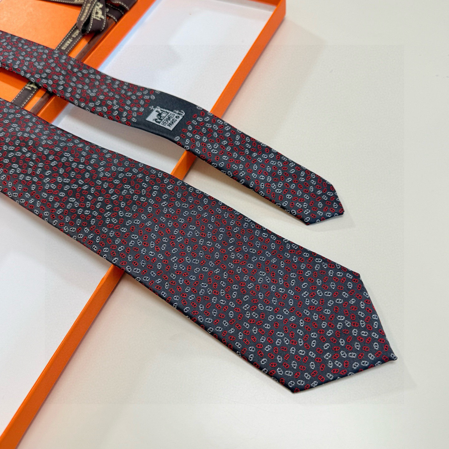 Hermès Red Chain Link Silk Tie – Designer Neckwear
