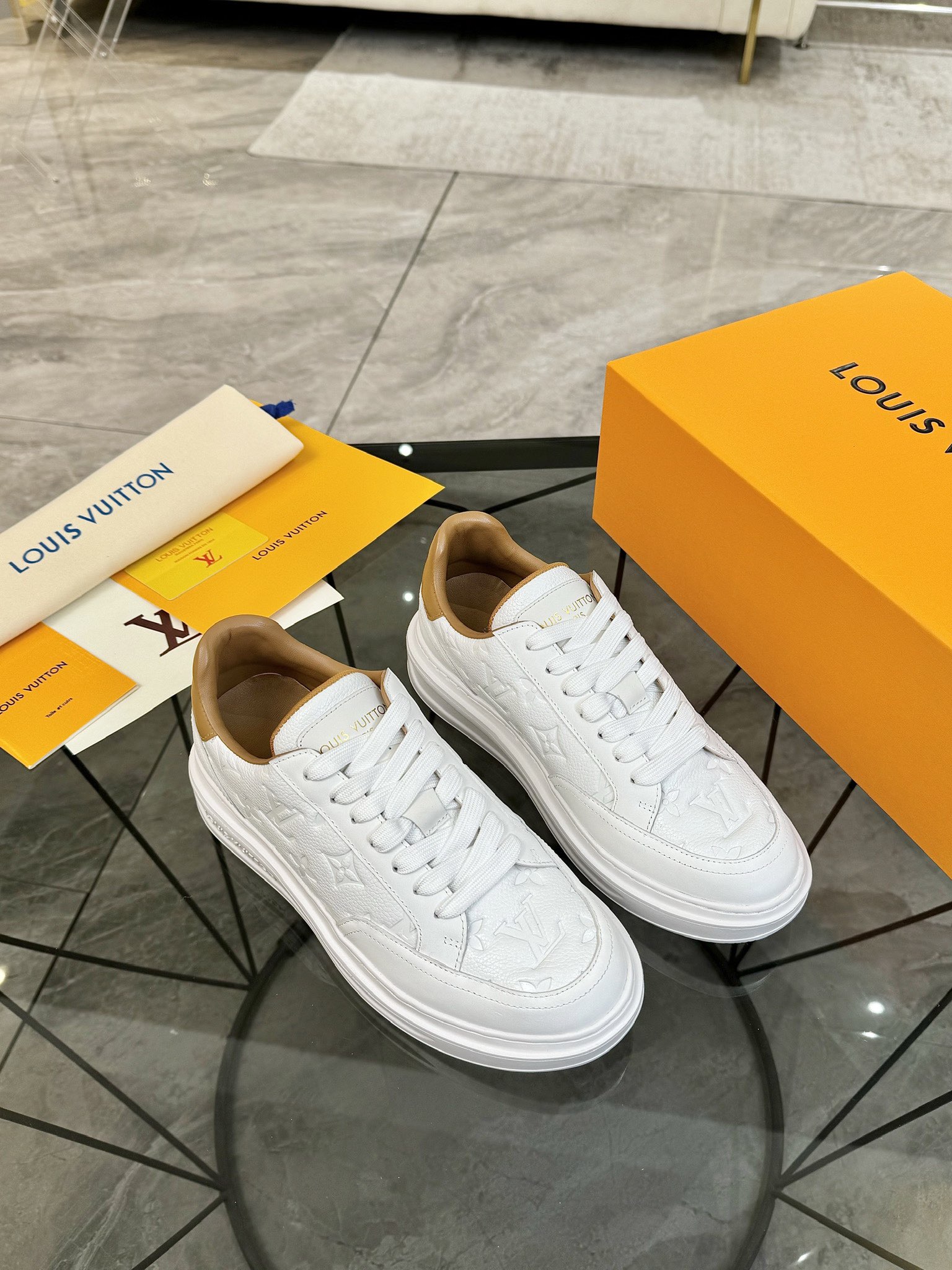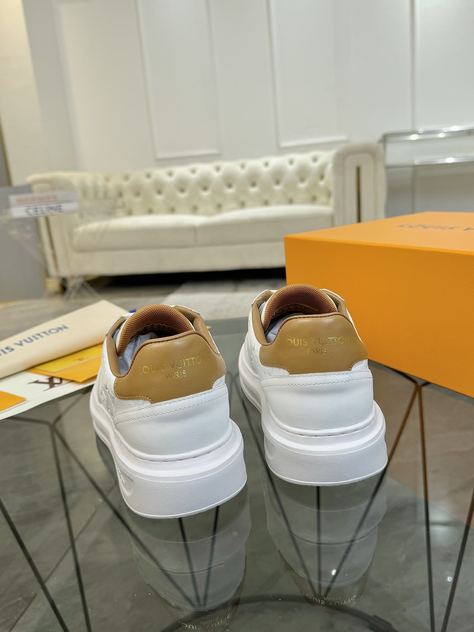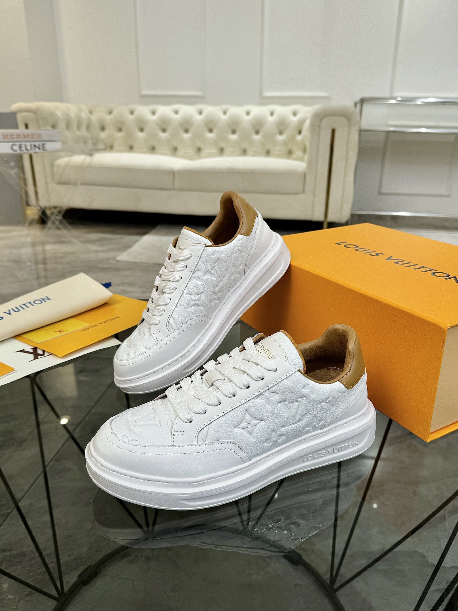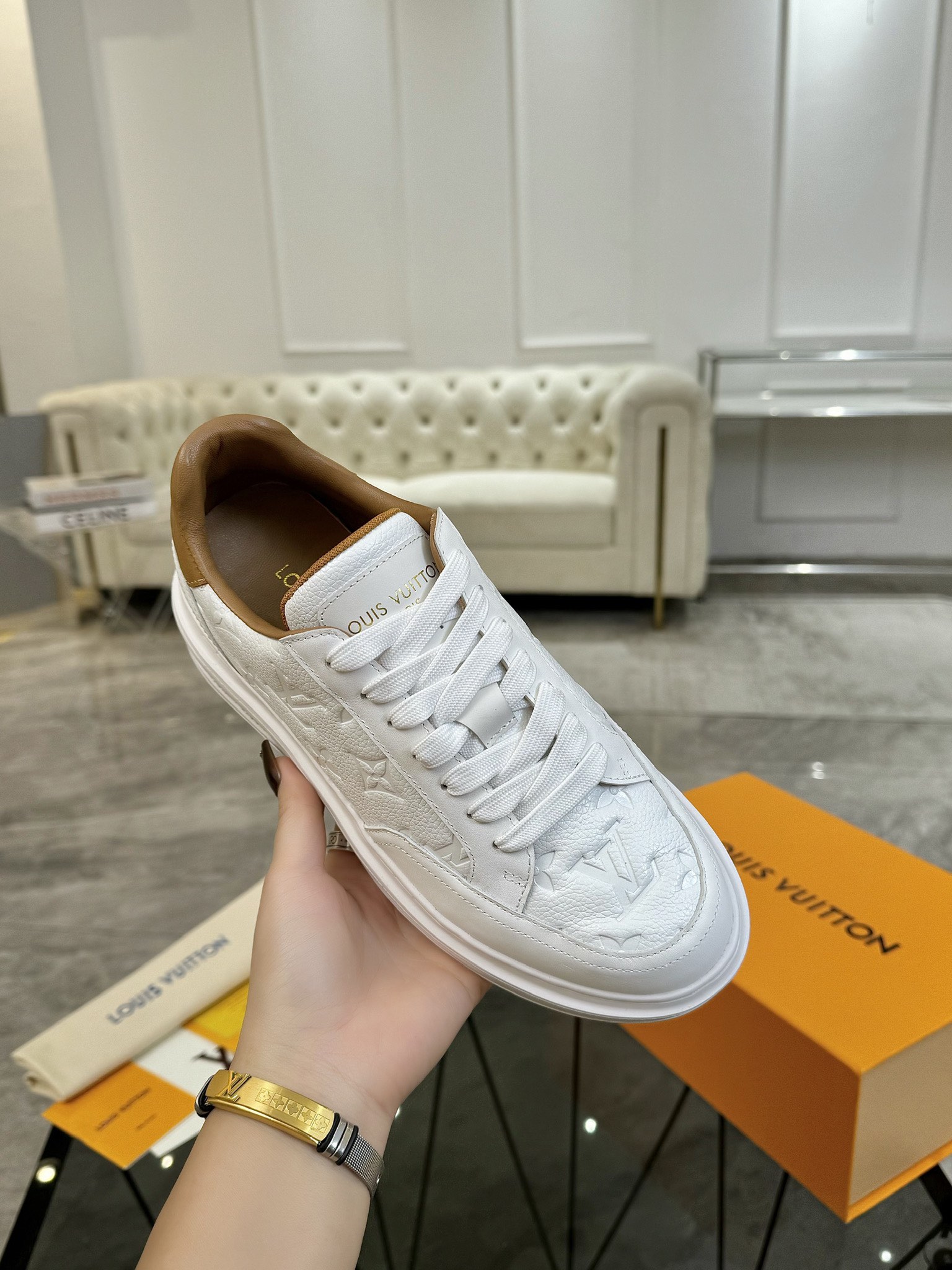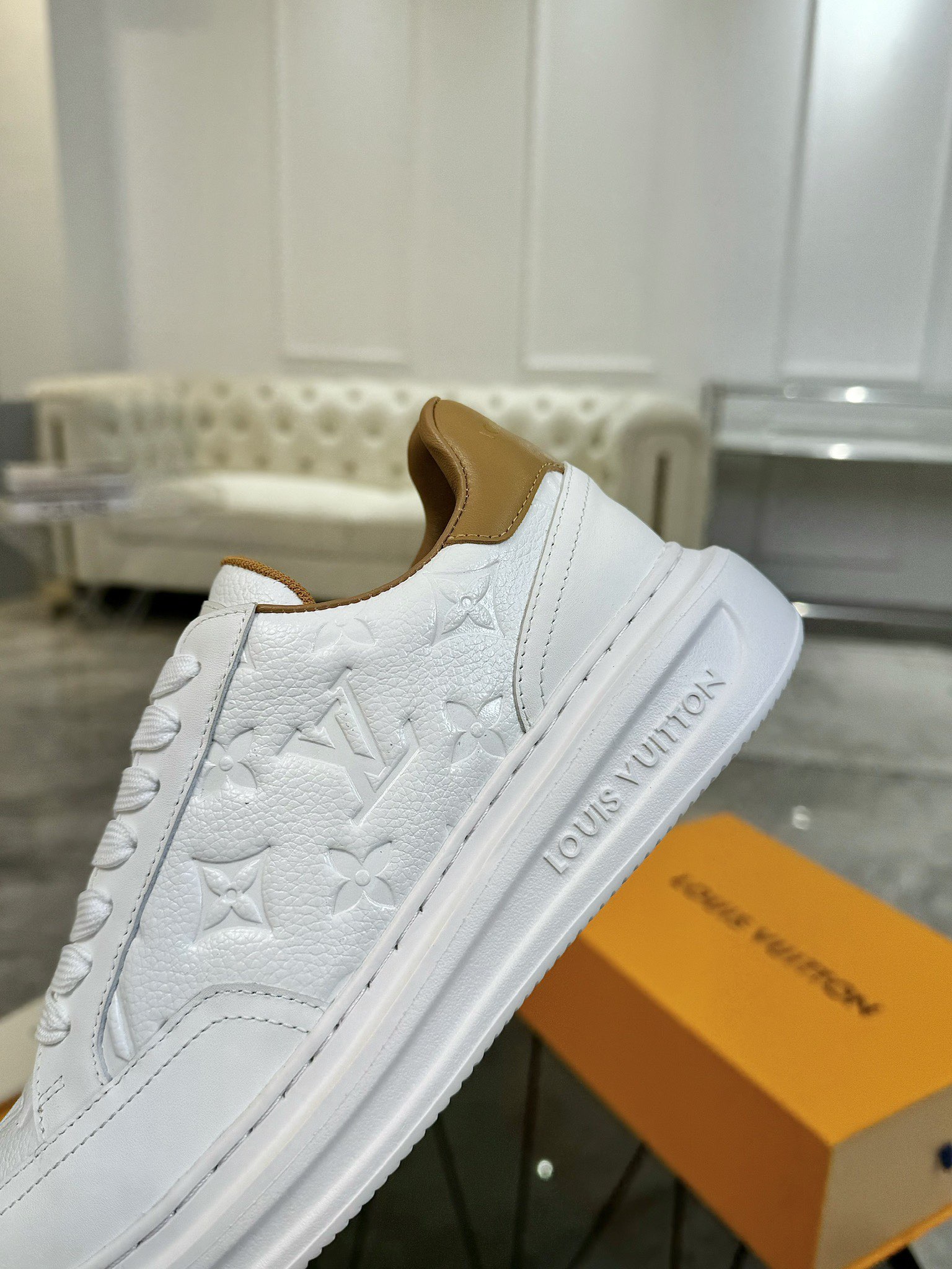 embossed LV White Leather Low-Top Sneakers - LV White Leather Embossed