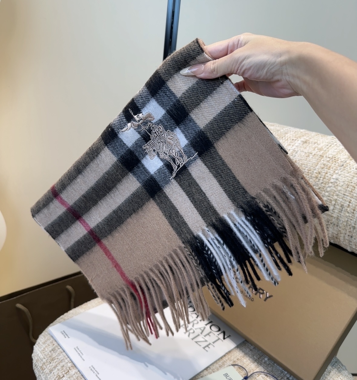 For additional background, review the external reference about embroidered Burberry Check Cashmere Scarf.