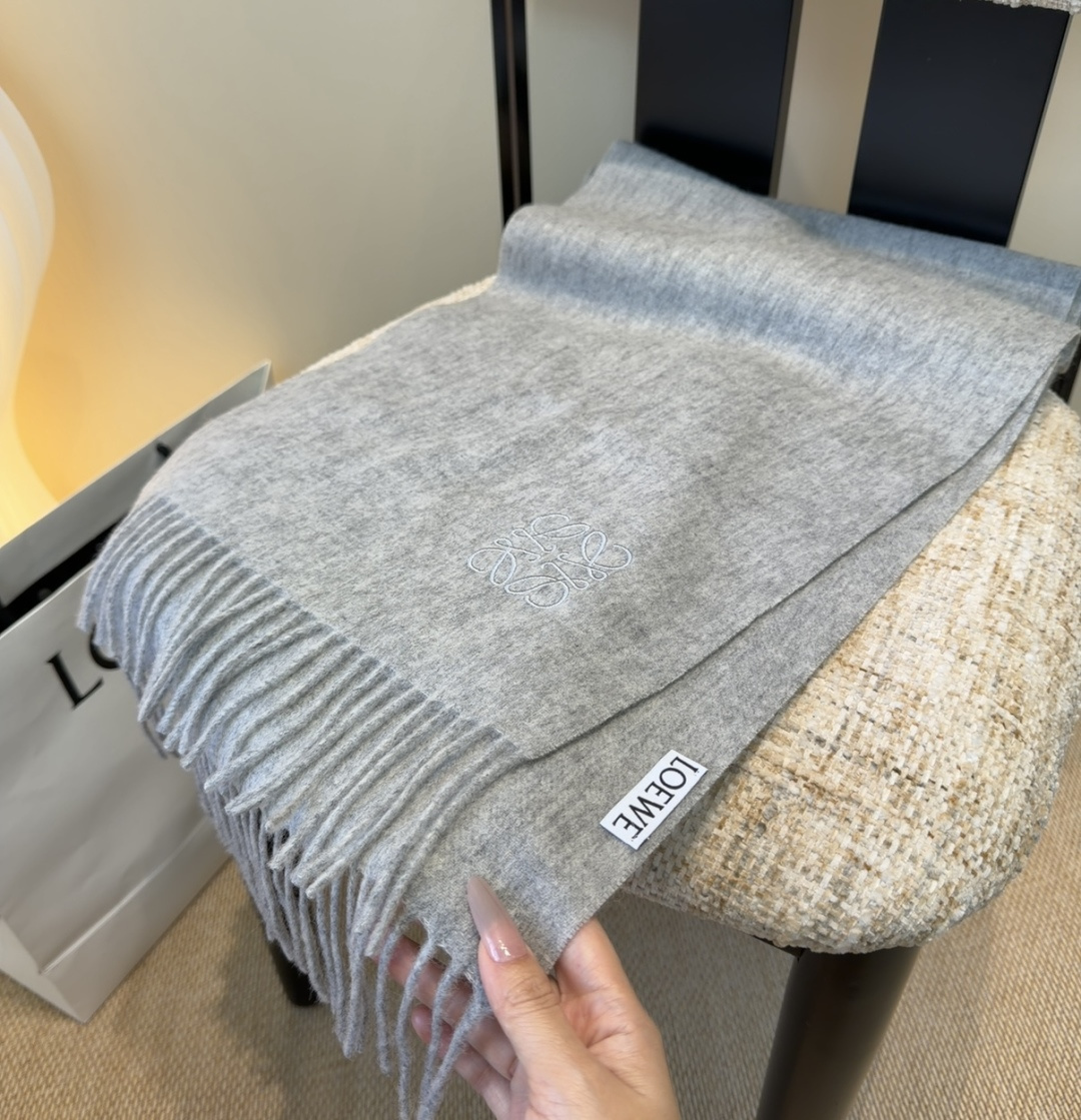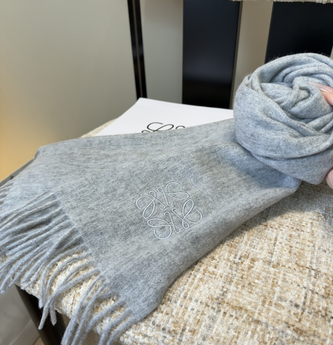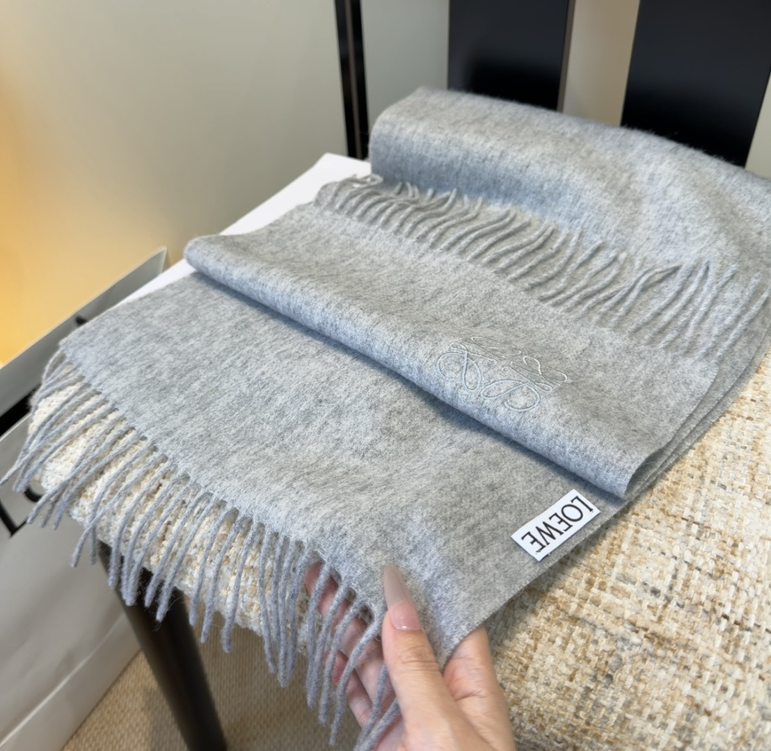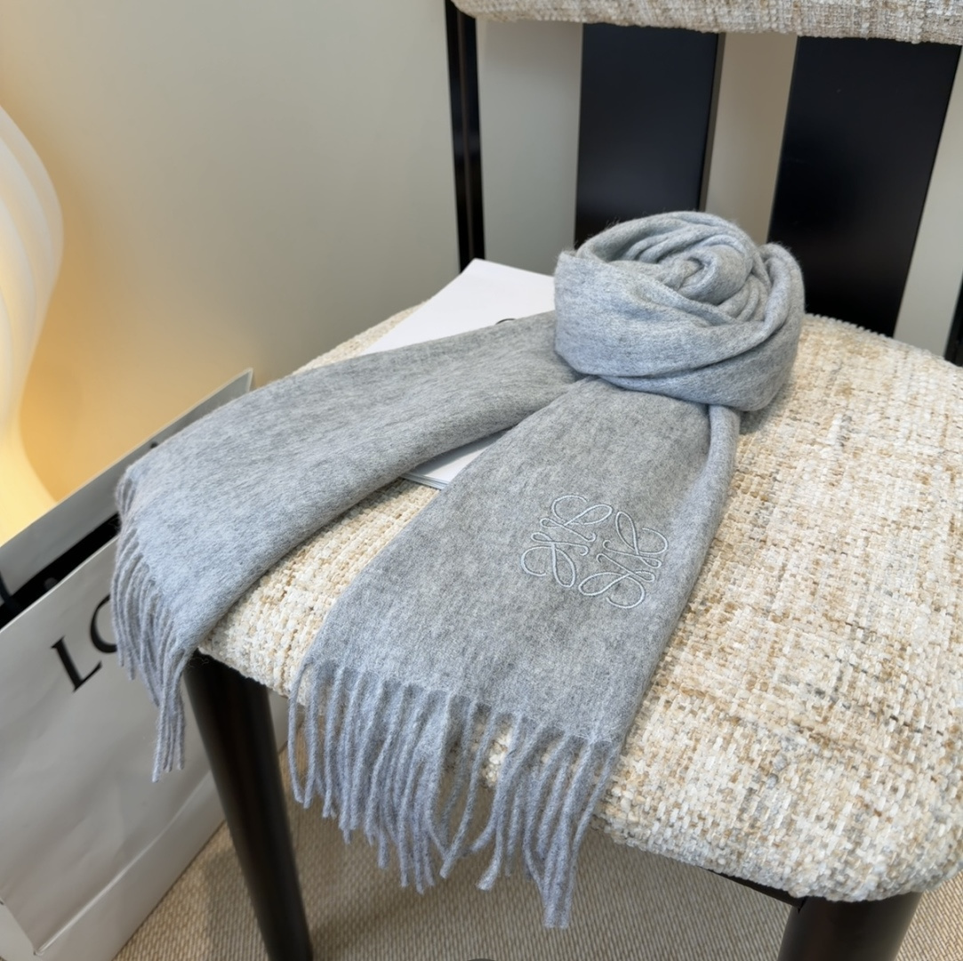 - Introducing the Loewe Grey Wool Scarf with Embroidered Logo