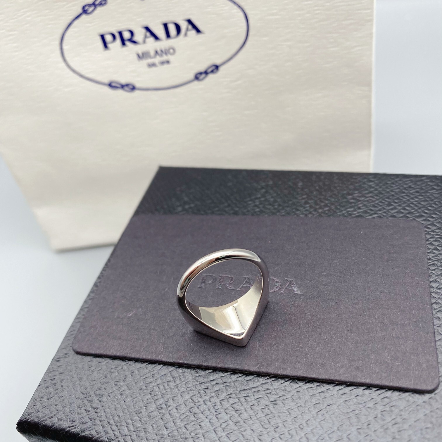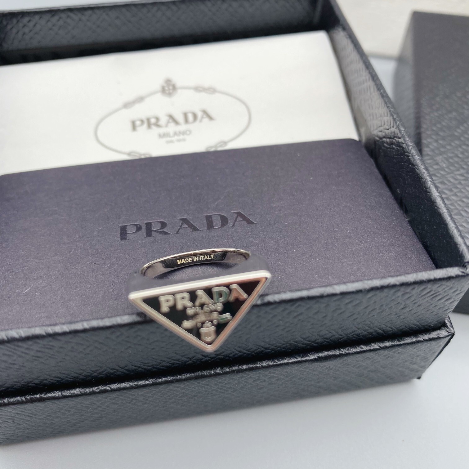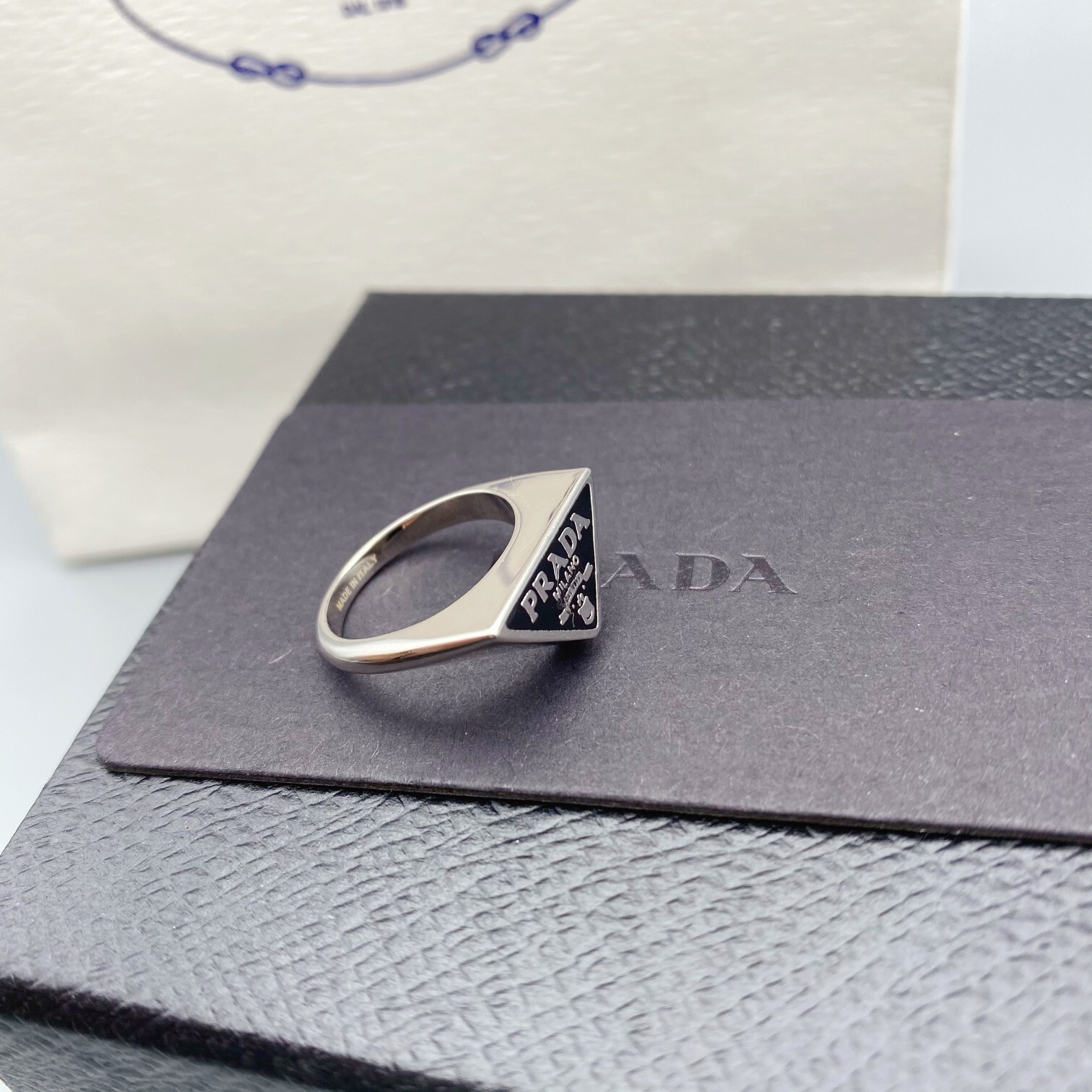 - Introducing the Prada Silver & Black Enamel Triangle Logo Ring