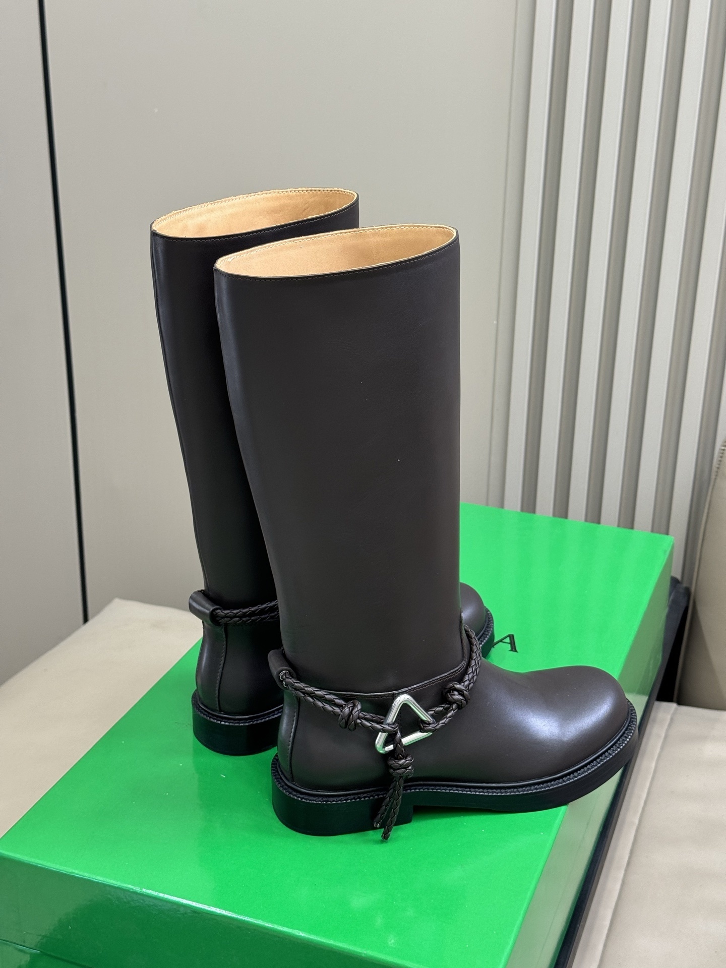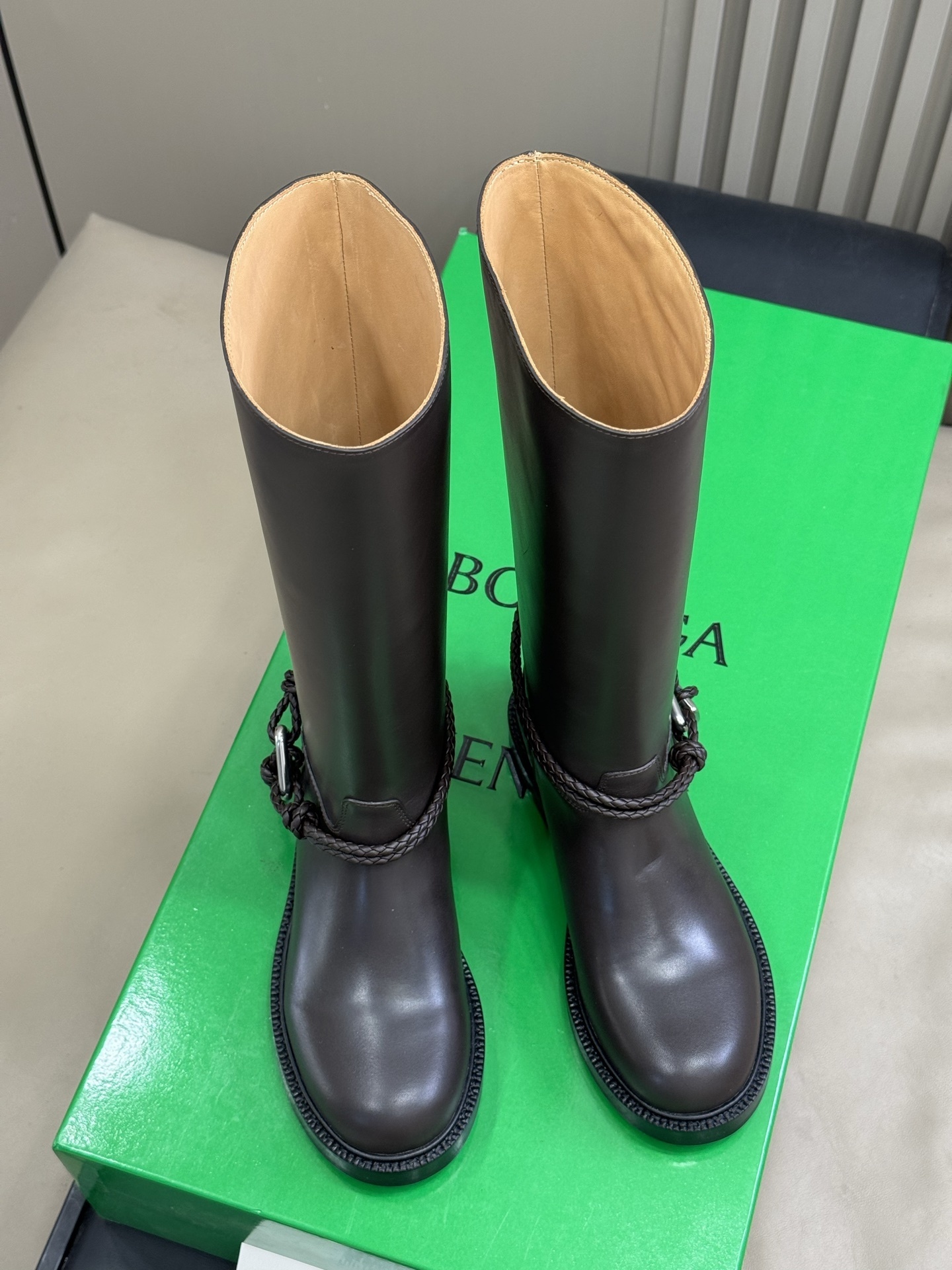 - equestrian Bottega Veneta Brown Leather Tall Boots Features