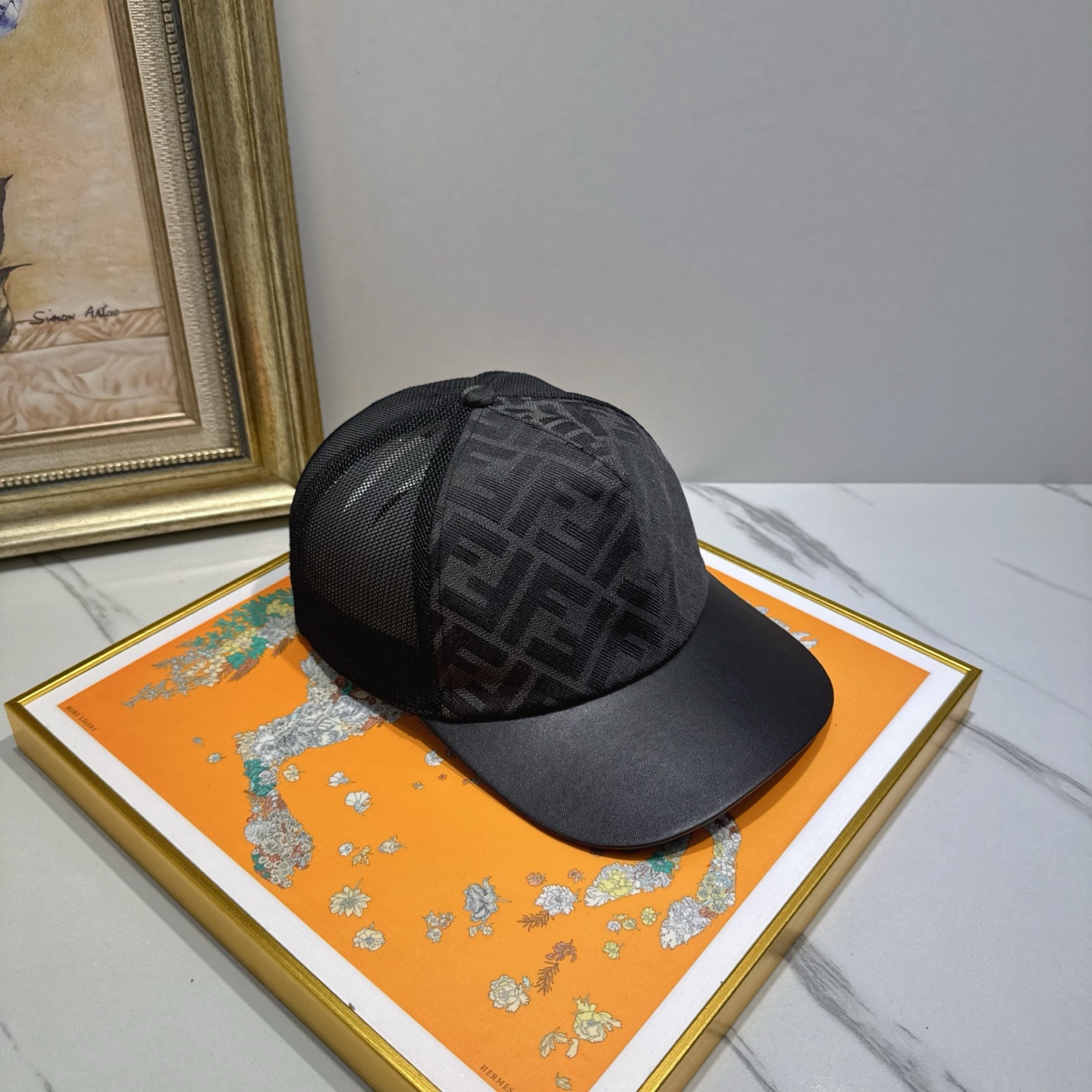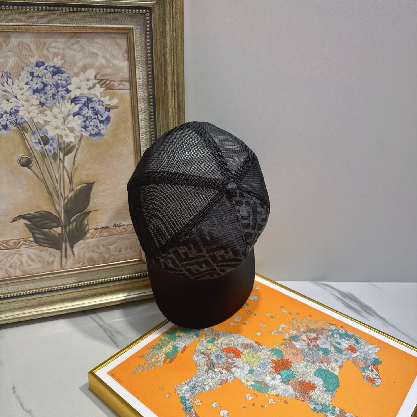 Fendi Black FF Print Cap - Fendi Black FF Print Mesh Cap - Designer