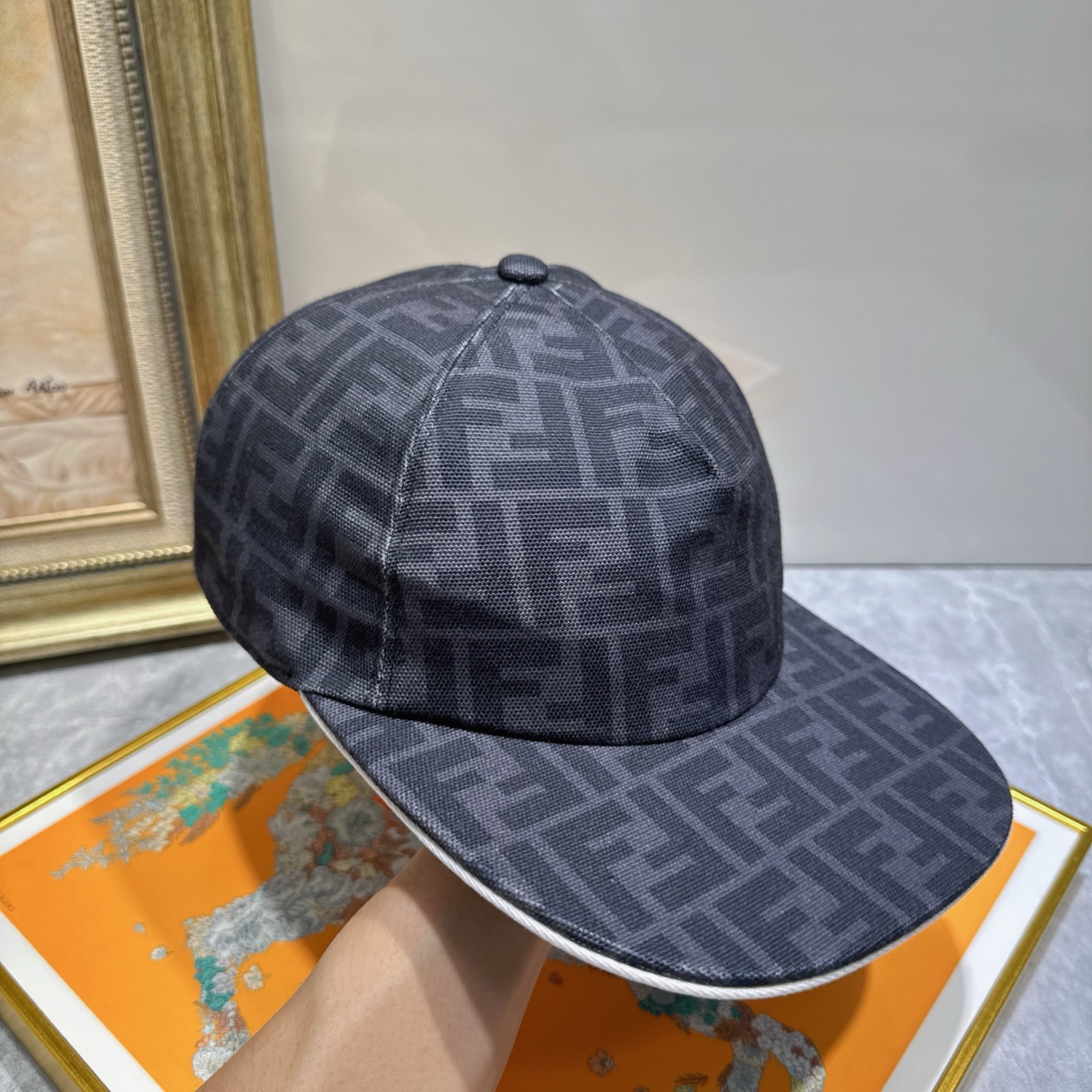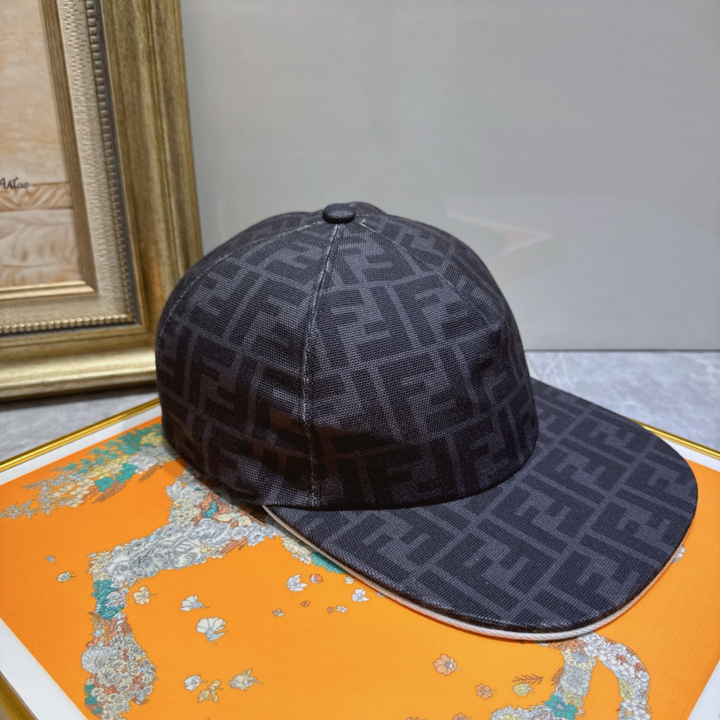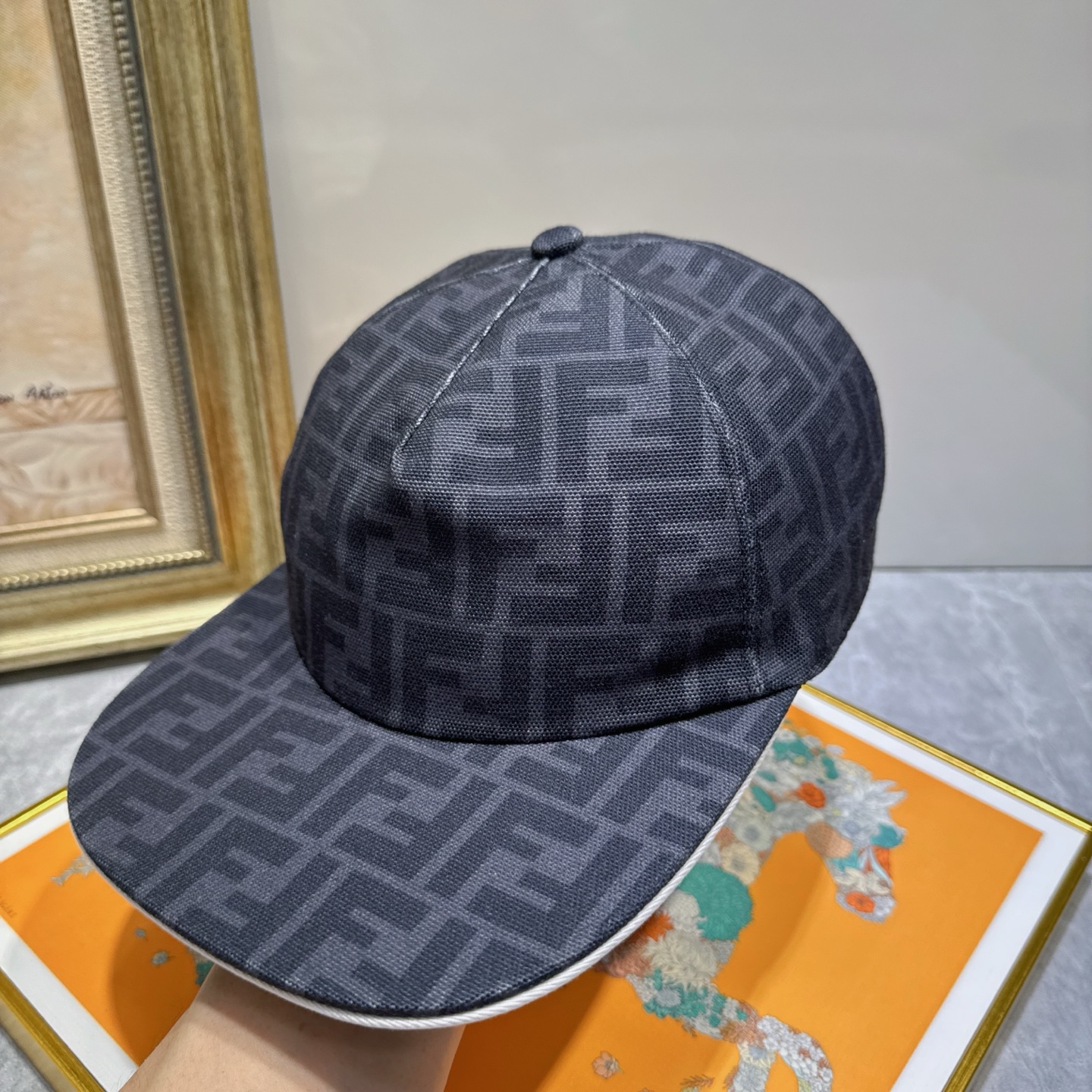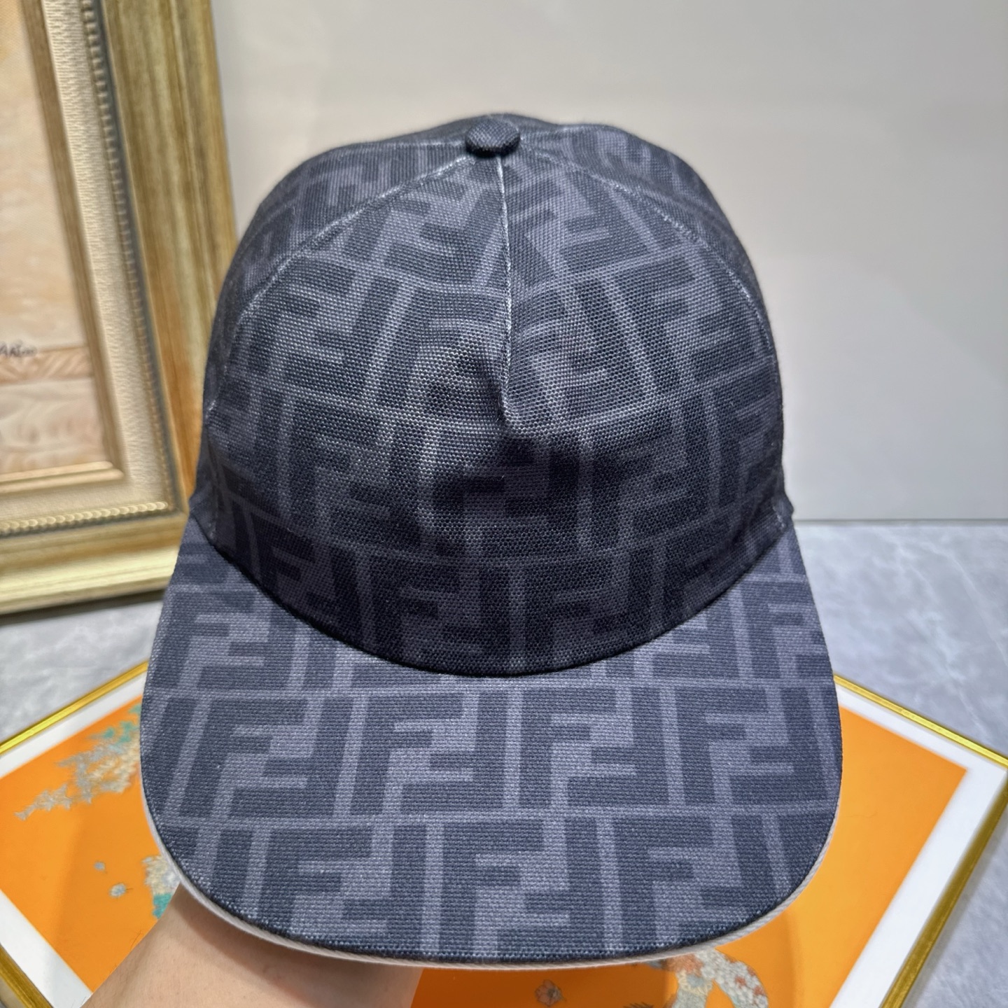 To maintain the shape of the cap, avoid folding or crushing it. When cleaning, gently pat the fabric instead of rubbing vigorously. If the cap gets wet, allow it to air dry naturally, away from direct heat sources. Avoid using a dryer, as this can cause the fabric to shrink or distort. The adjustable strap at the back should be handled with care to prevent damage to the buckle or strap. By taking these precautions, you can ensure that your Fendi Dark Gray FF Logo Baseball Cap remains a cherished accessory in your wardrobe.