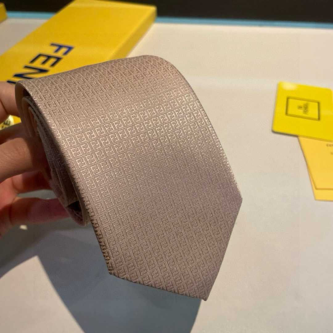 The light pink color and subtle FF logo pattern make this tie incredibly versatile, allowing you to pair it with a variety of shirts and suits. It adds a touch of elegance to any outfit, making it suitable for a wide range of occasions. Whether you're wearing a classic navy suit, a sharp gray blazer, or a crisp white shirt, this tie will complement your look perfectly.