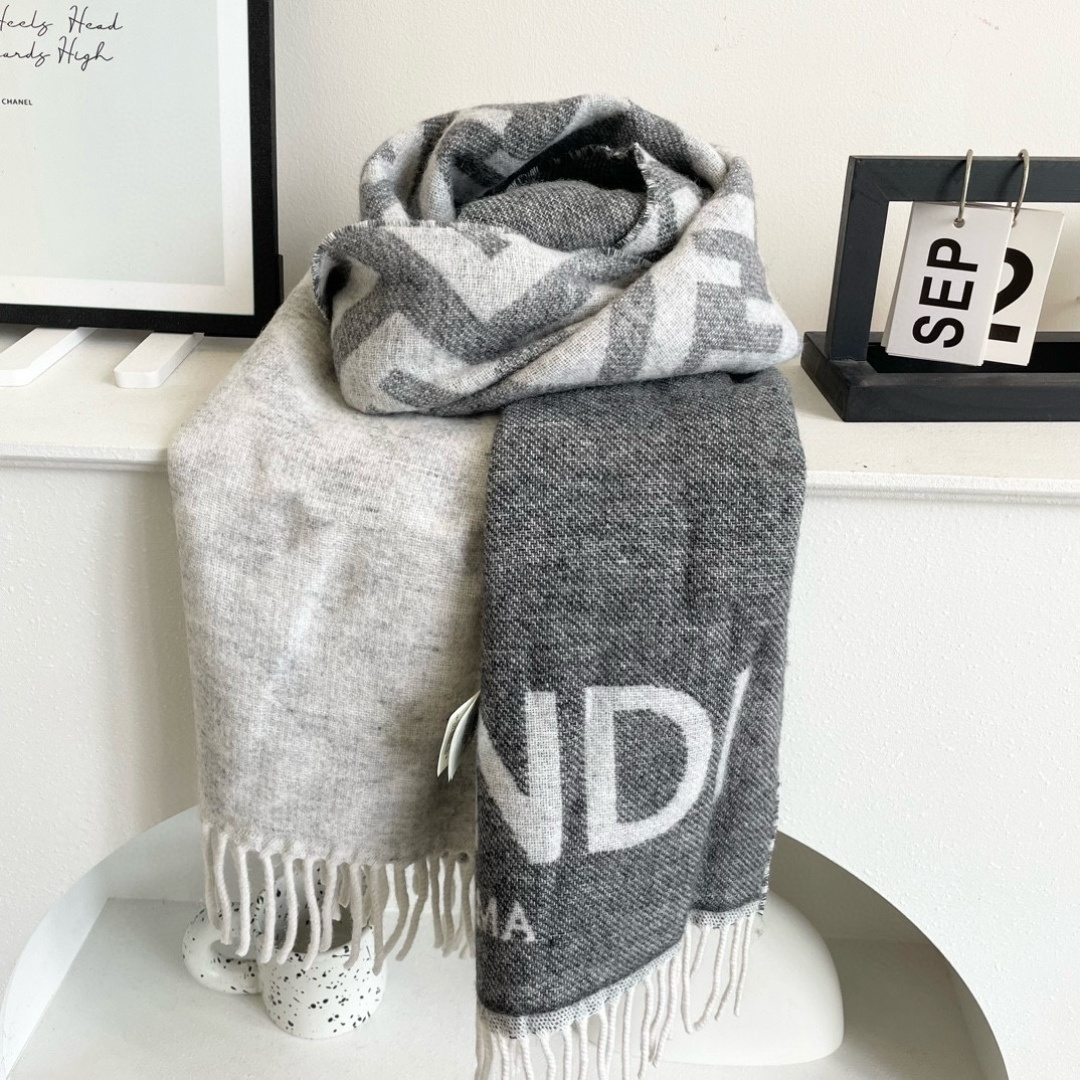 The Fendi Roma Logo Wool Scarf is crafted from 100% premium wool, ensuring exceptional softness and warmth. The intricate weave provides a luxurious feel against the skin, making it a pleasure to wear. The scarf features the iconic Fendi Roma logo prominently displayed, adding a touch of brand recognition and sophistication. The contrasting colors of grey and pink offer versatility, allowing you to pair it with a wide range of outfits. The fringed edges add a playful and stylish detail, enhancing the overall appeal of the scarf. The generous size of the scarf allows for various styling options, from draping it casually over your shoulders to wrapping it snugly around your neck.